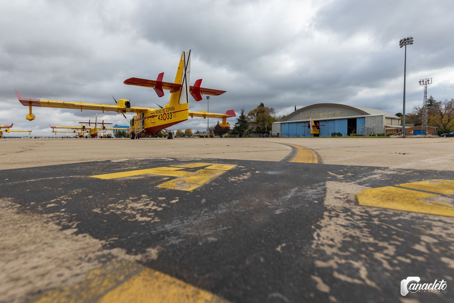 At the moment, the 43 Grupo has a fleet of 18 aircraft, 14 of which are the Canadair CL 215T and the remaining 4 are the more modern CL 415.