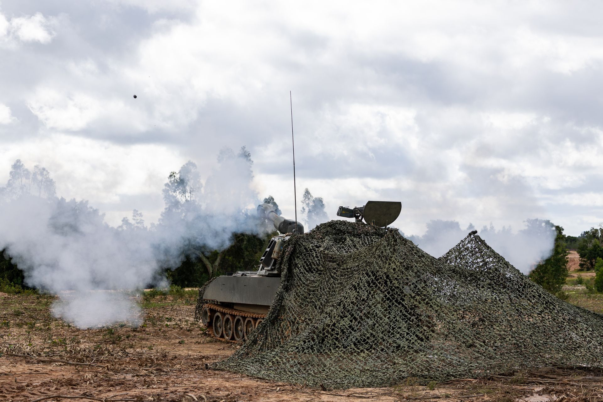 Two firing sequences of M109A5 self-propelled howitzers; Exercise STRONG IMPACT 25;