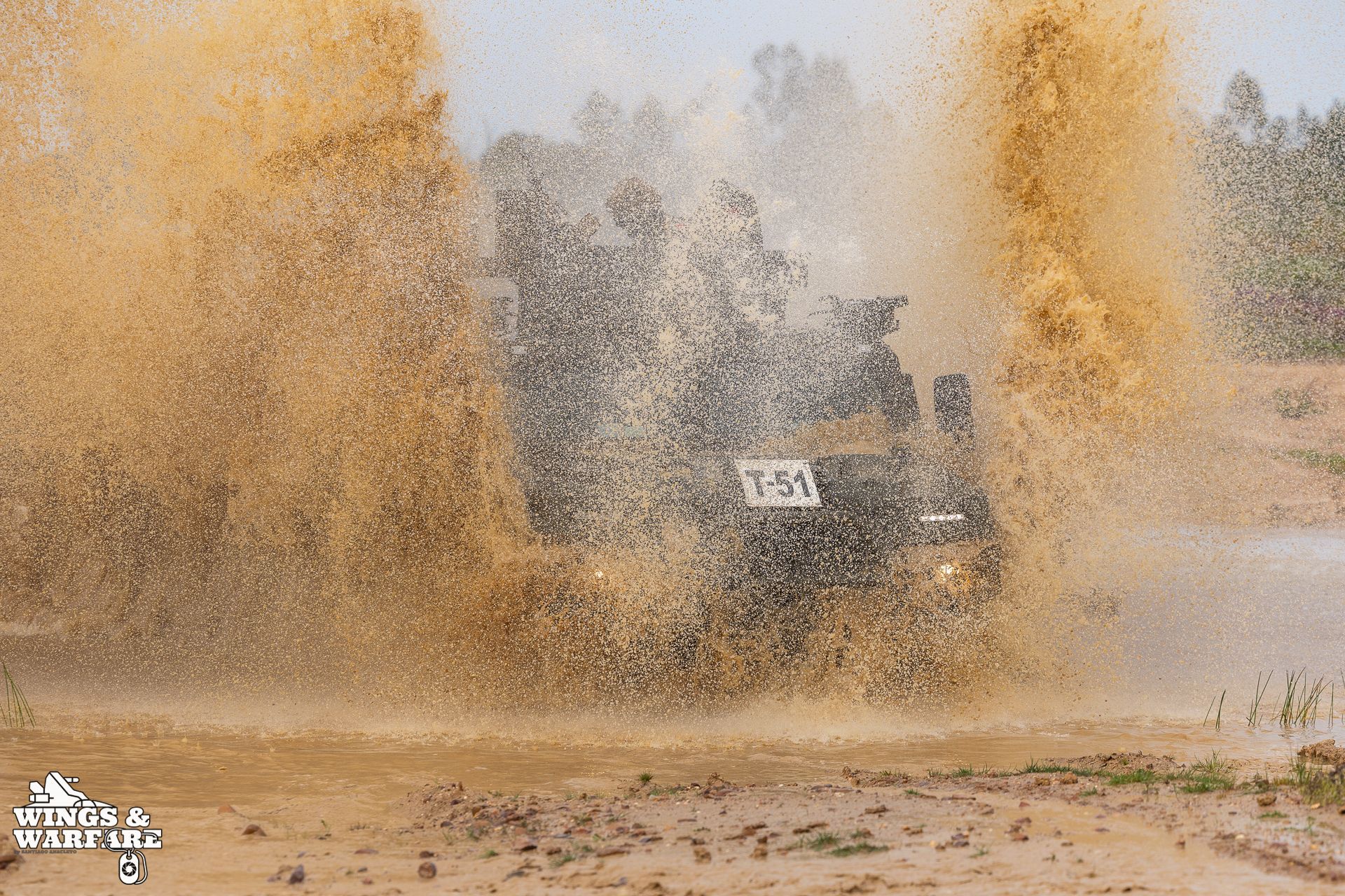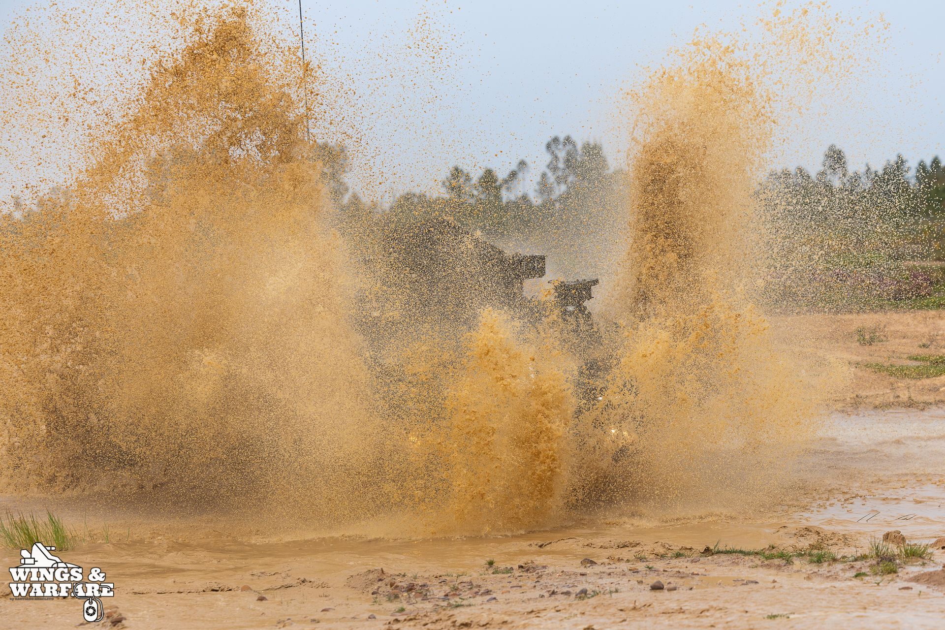 (Even through the mud, the R3 easily recognized the two VAMTAC vehicles and kept them in focus. I should add that I had started focusing before they entered the mud, and even with the mud in the foreground, the camera did not lose focus.)