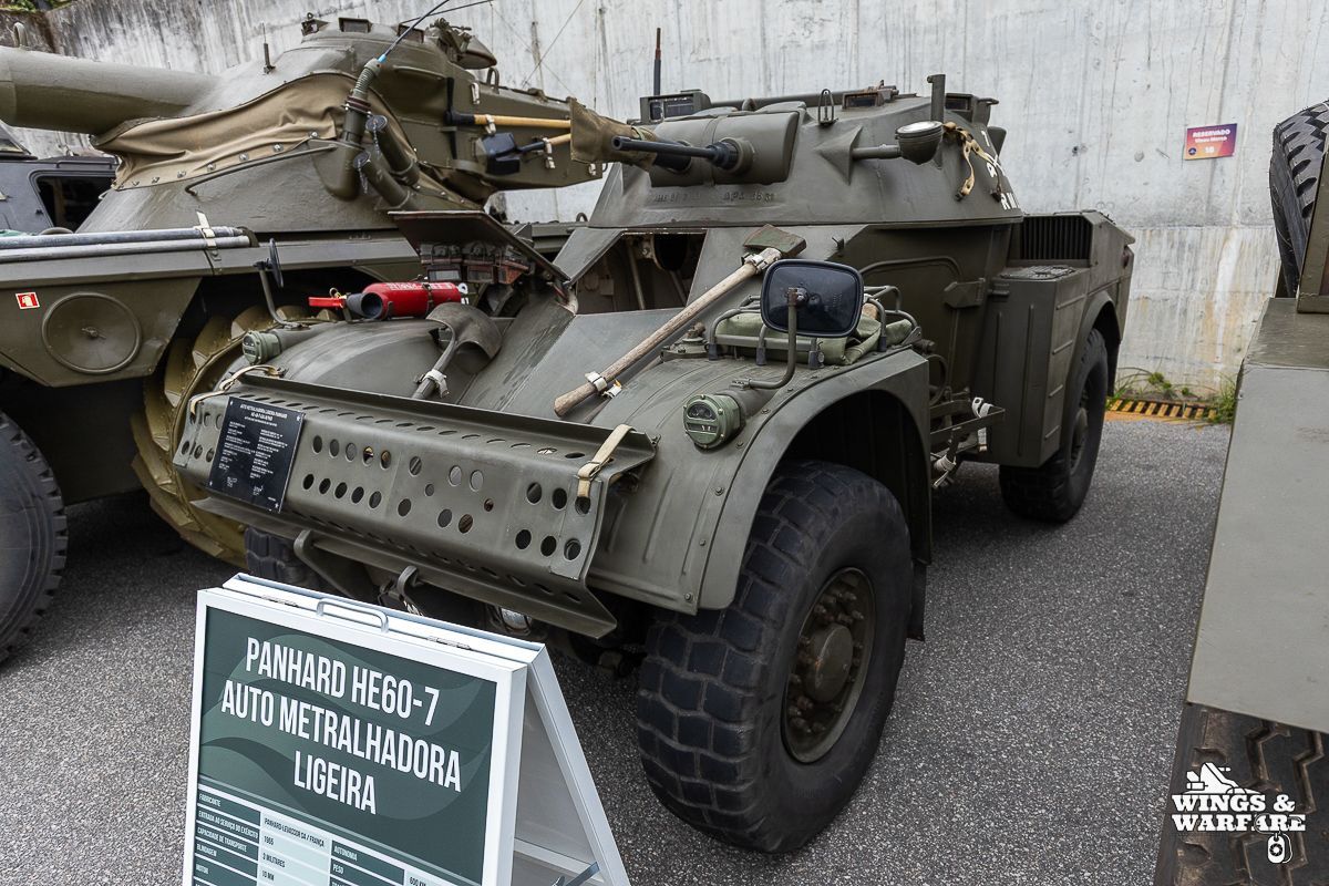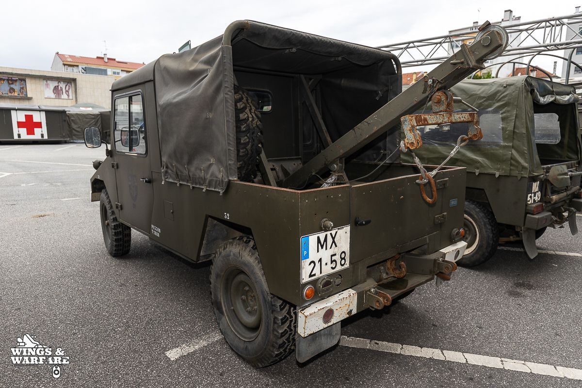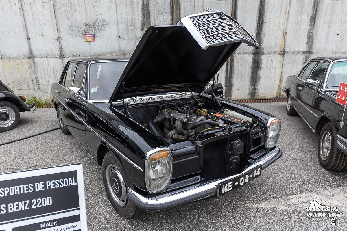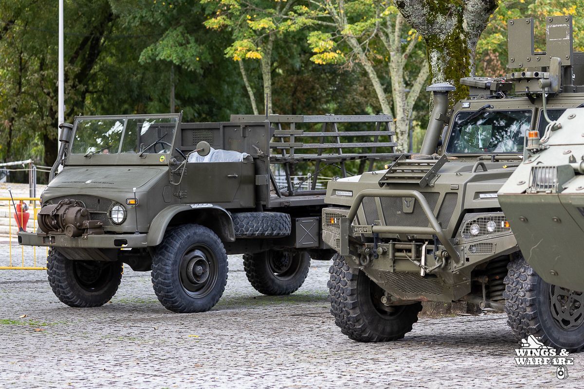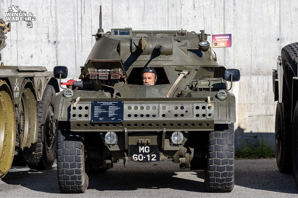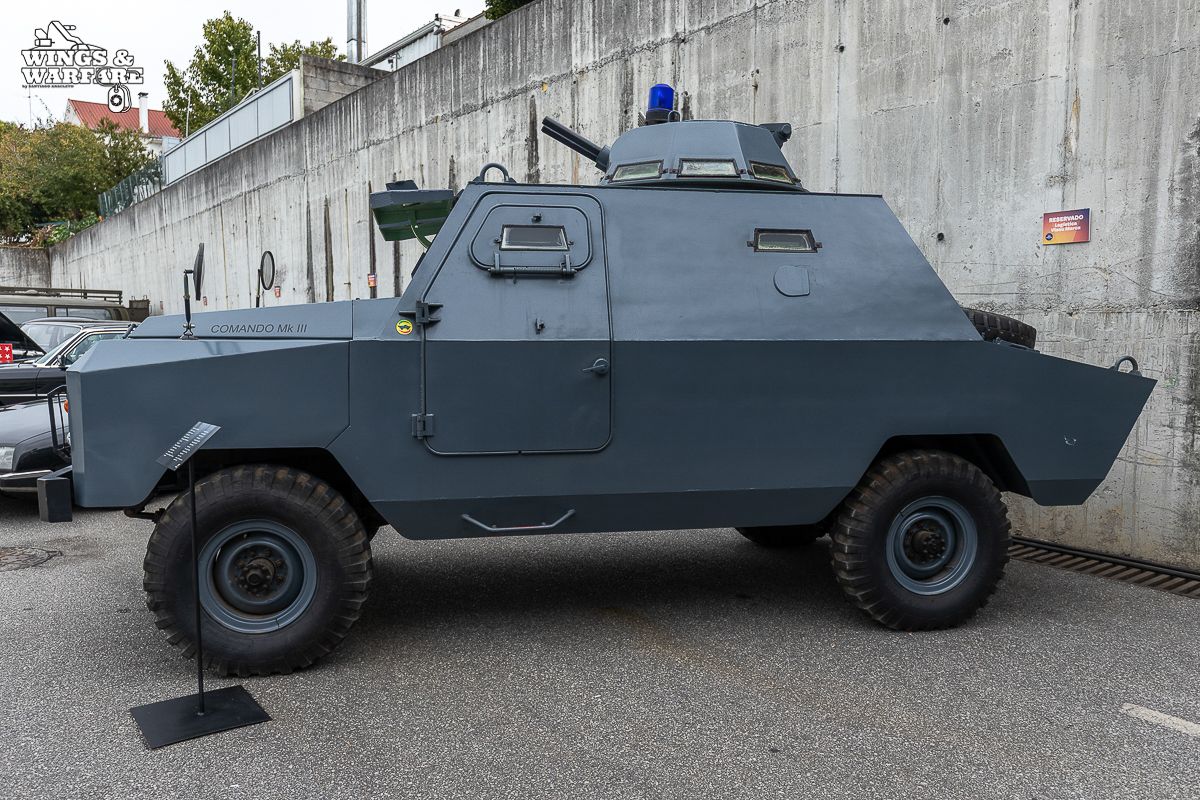 Among the models on display were the Panhard EBR 75, the Panhard AML HE60-7, the Humber Mk IV, and the Chaimite V200 “Bula”; the Berliet-Tramagal trucks; the Unimog S404; vehicles for transporting officers and members of the government, such as the Mercedes 280 SE, the Mercedes-Benz 220D, and the Citroën CX Limousine; the Bravia Comando Mk III; and the Volkswagen Type 2.