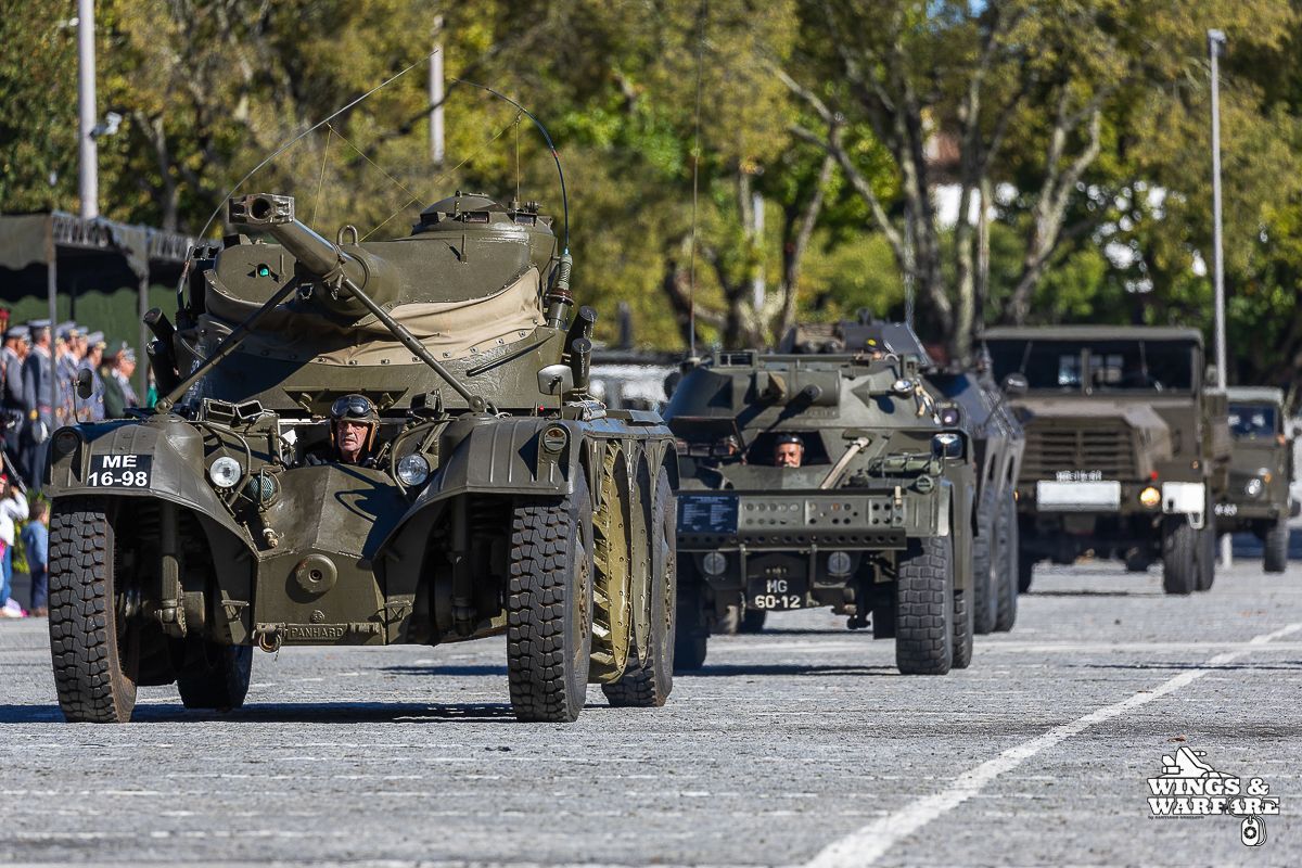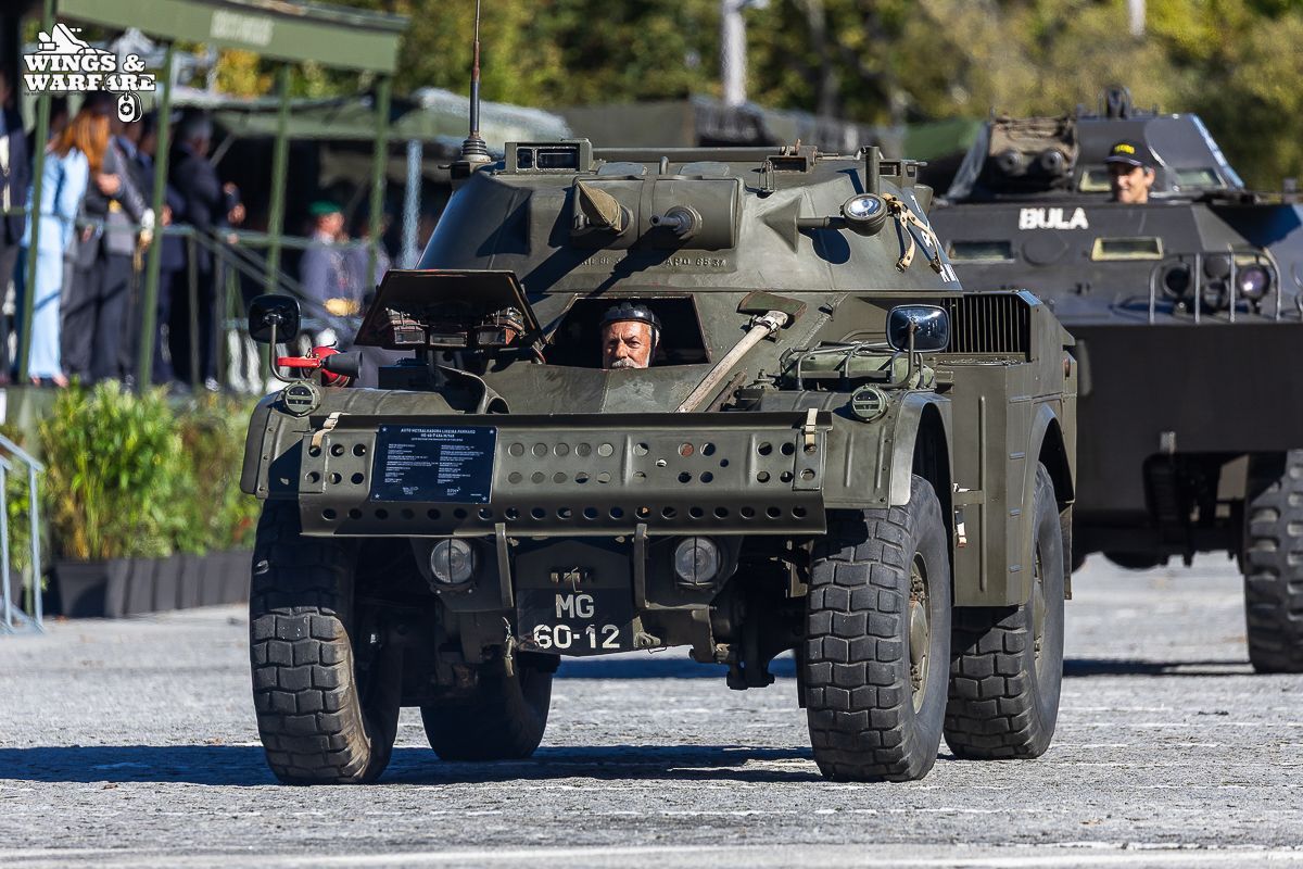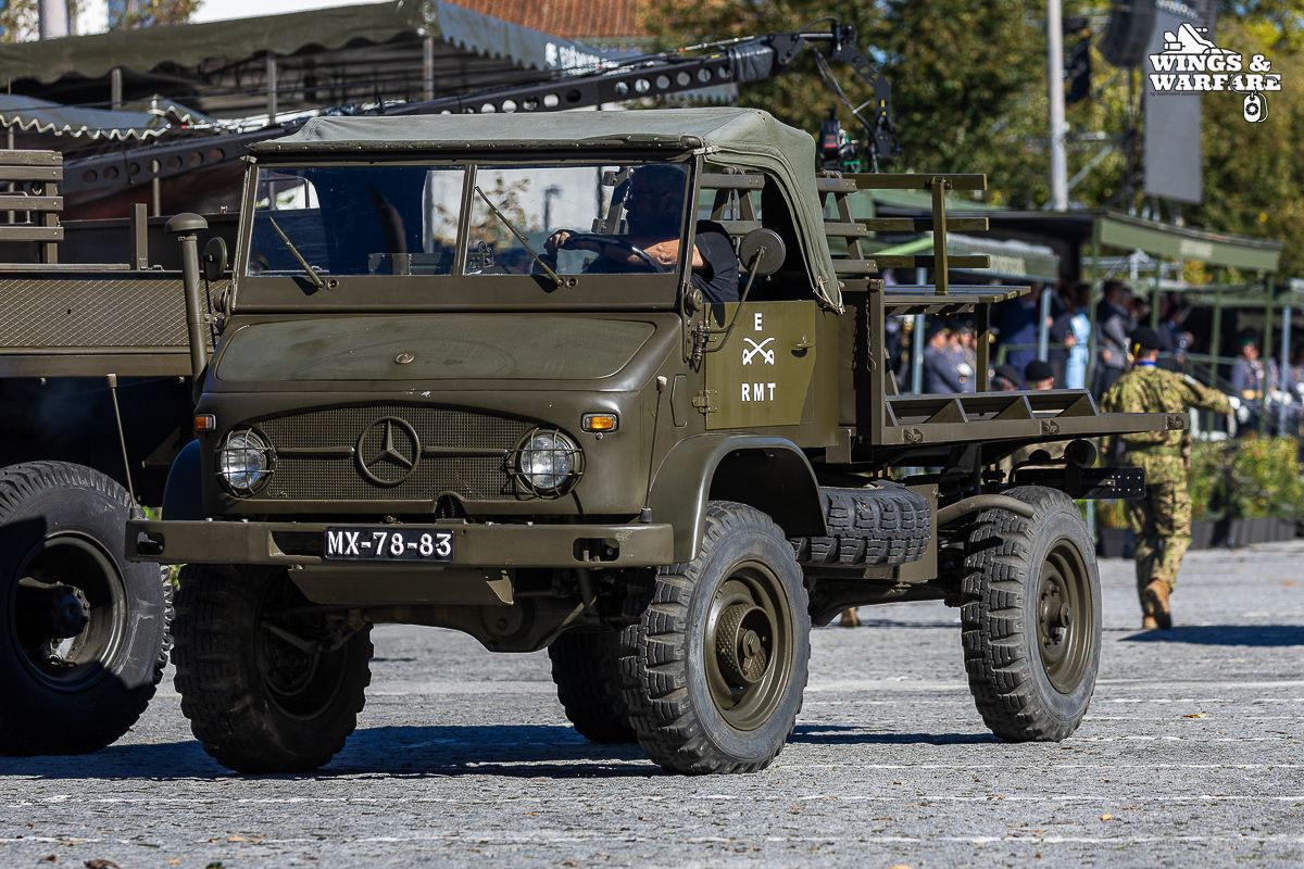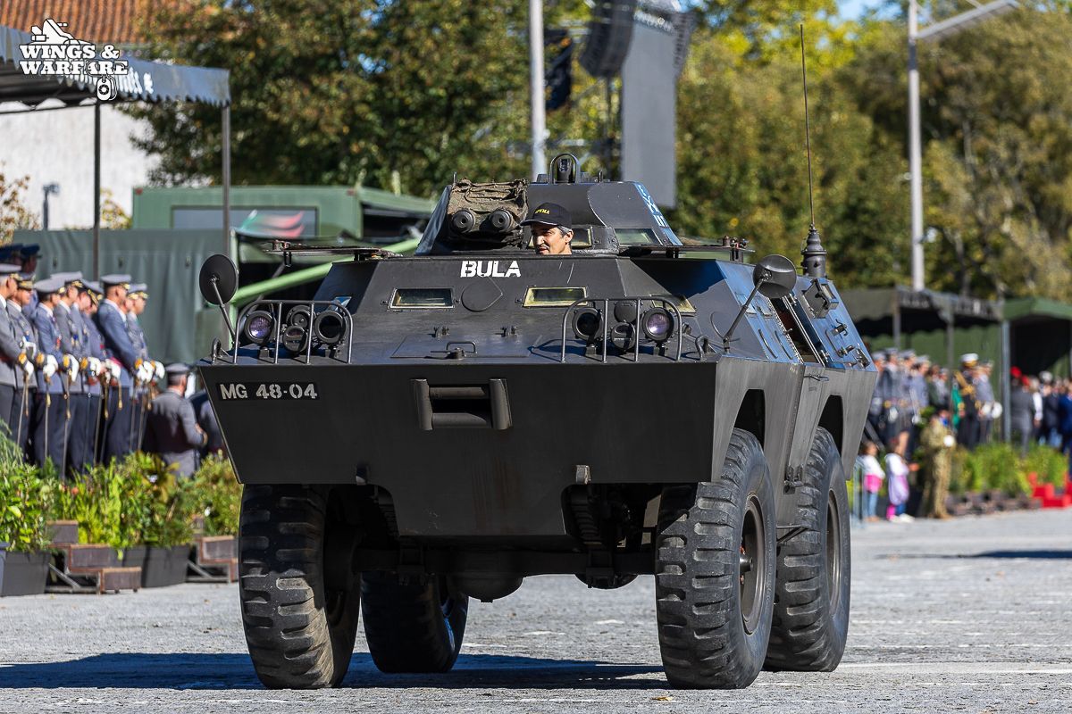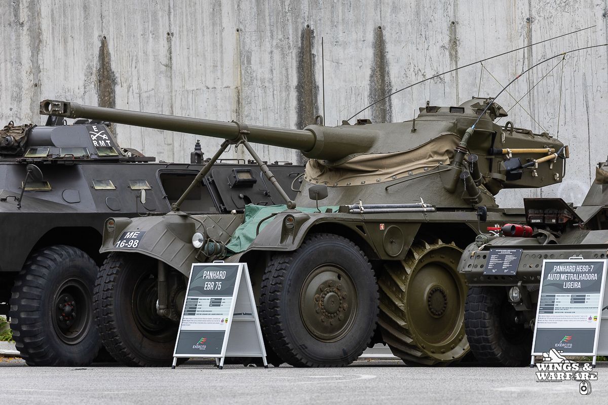 Among the models on display were the Panhard EBR 75, the Panhard AML HE60-7, the Humber Mk IV, and the Chaimite V200 “Bula”; the Berliet-Tramagal trucks; the Unimog S404; vehicles for transporting officers and members of the government, such as the Mercedes 280 SE, the Mercedes-Benz 220D, and the Citroën CX Limousine; the Bravia Comando Mk III; and the Volkswagen Type 2.