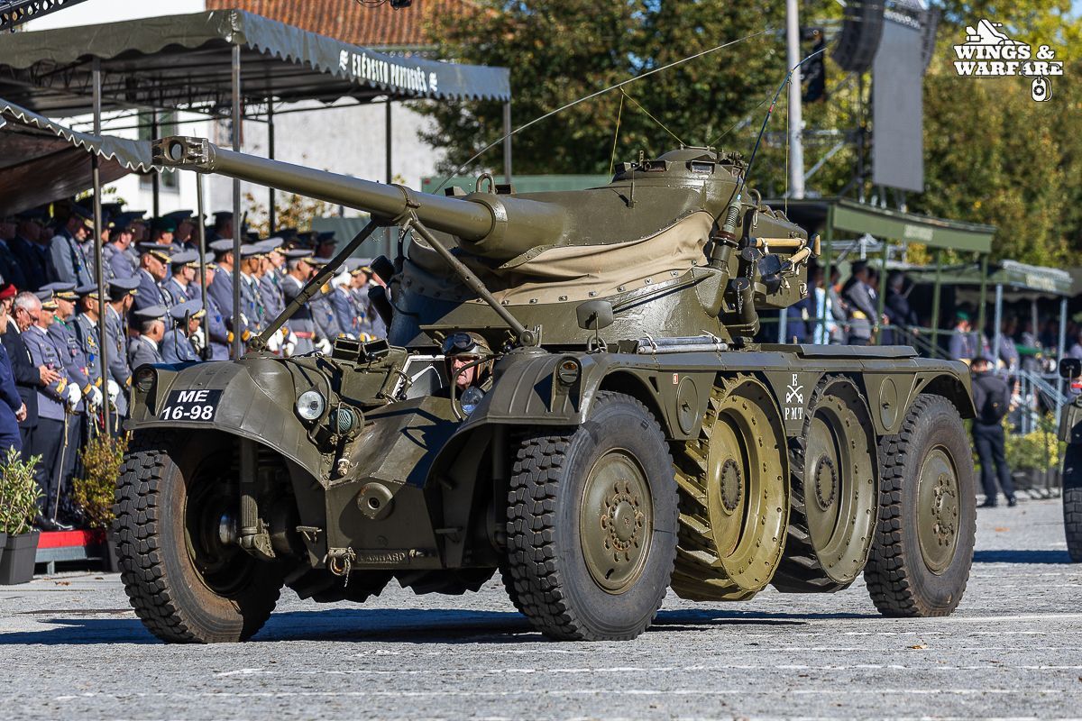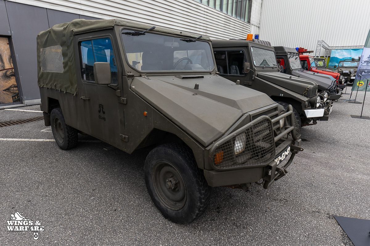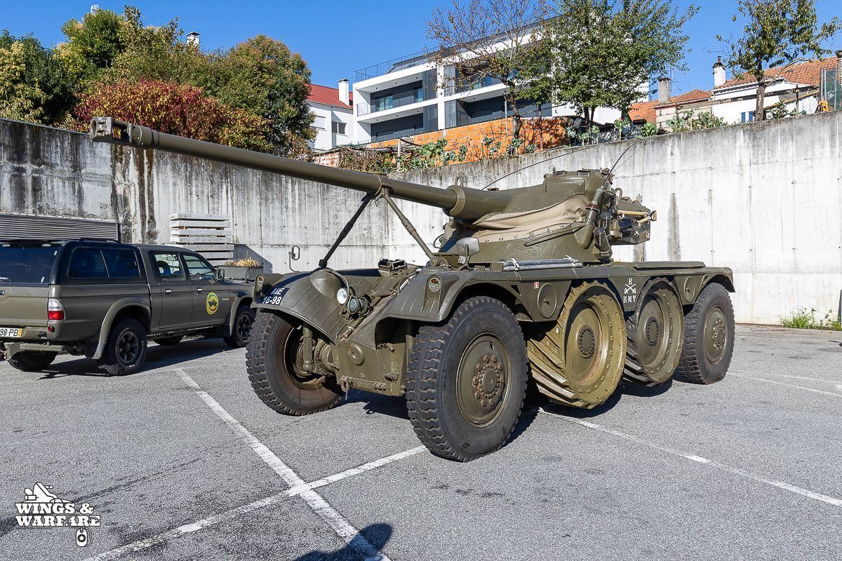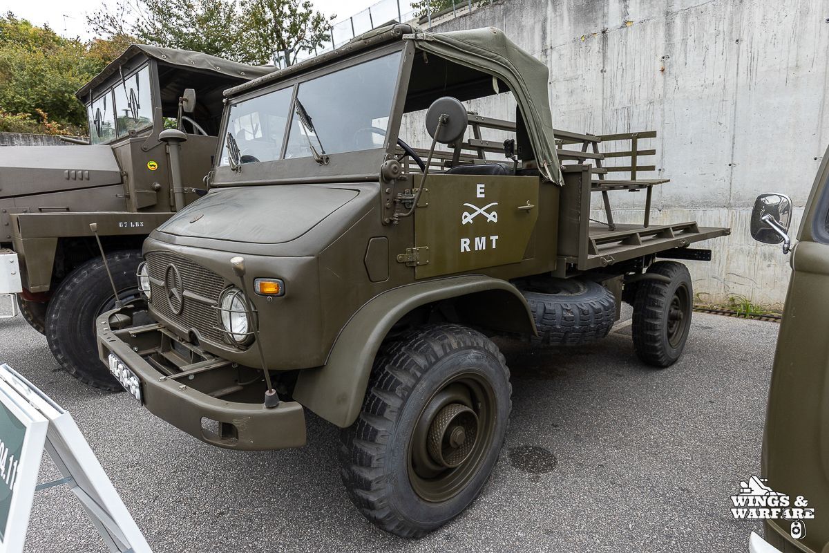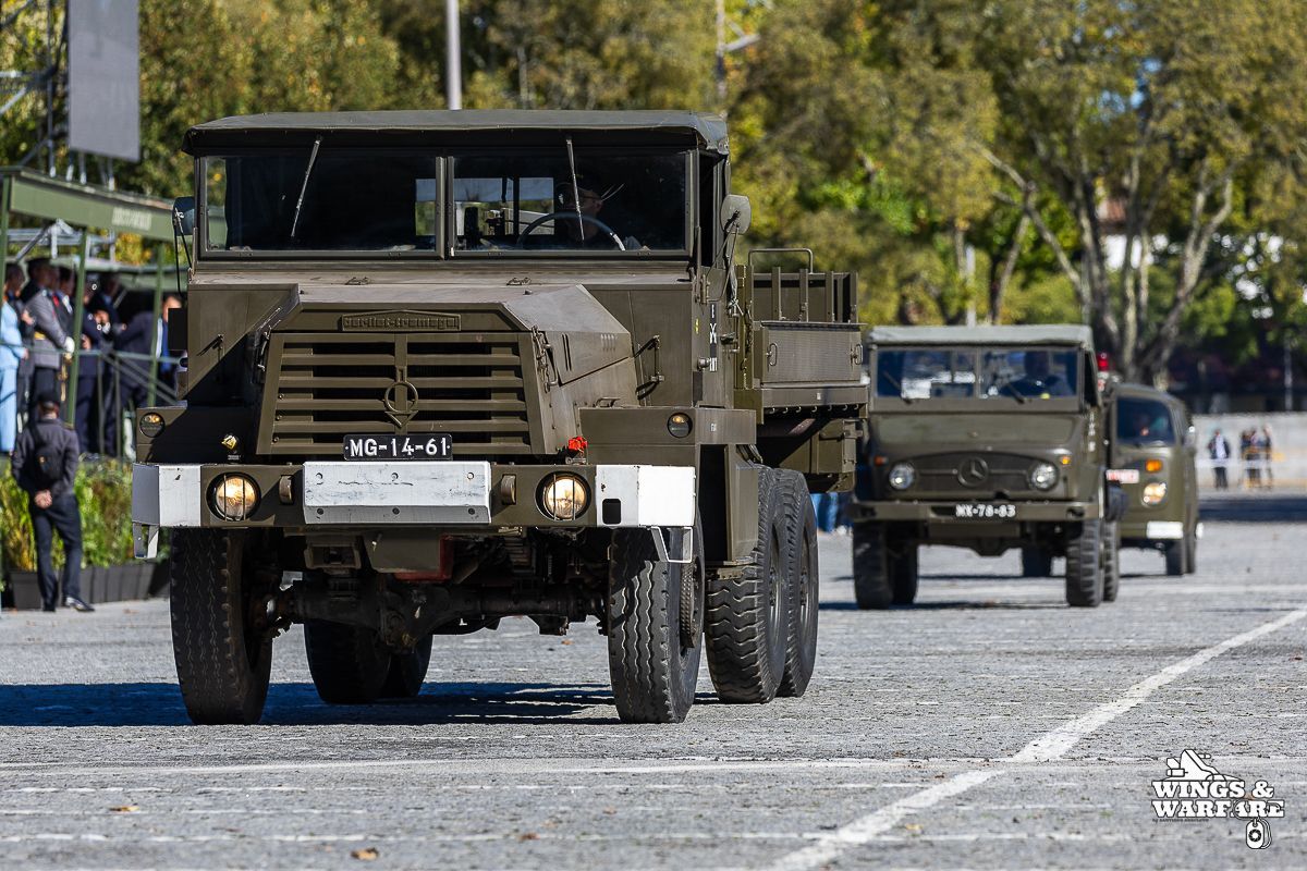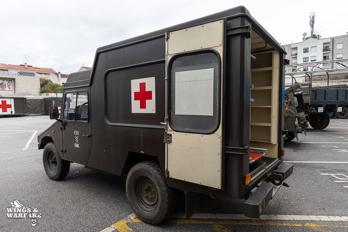 Among the models on display were the Panhard EBR 75, the Panhard AML HE60-7, the Humber Mk IV, and the Chaimite V200 “Bula”; the Berliet-Tramagal trucks; the Unimog S404; vehicles for transporting officers and members of the government, such as the Mercedes 280 SE, the Mercedes-Benz 220D, and the Citroën CX Limousine; the Bravia Comando Mk III; and the Volkswagen Type 2.