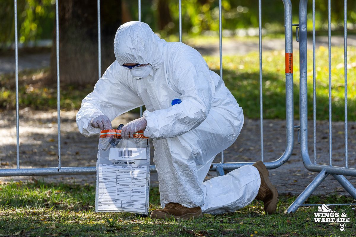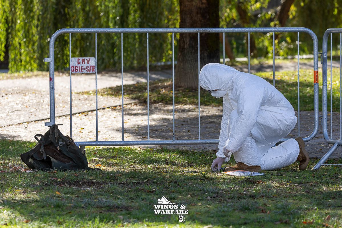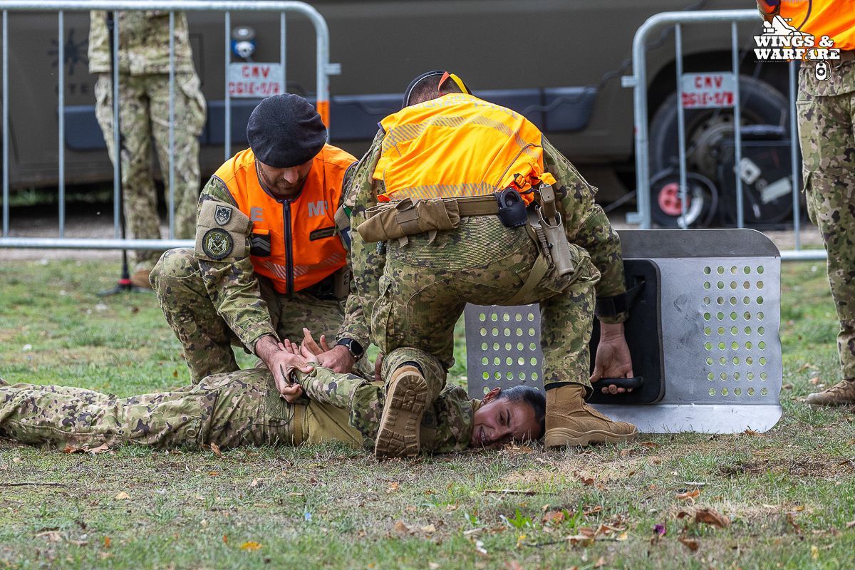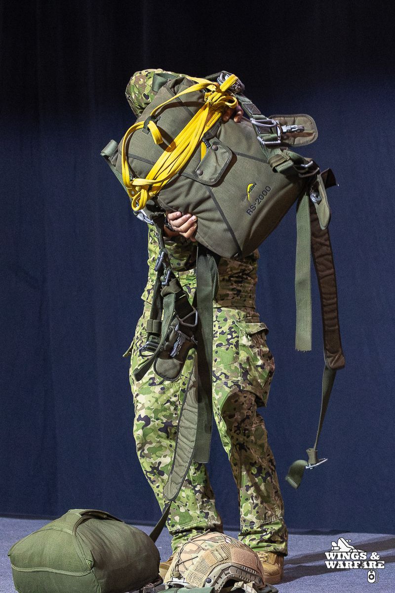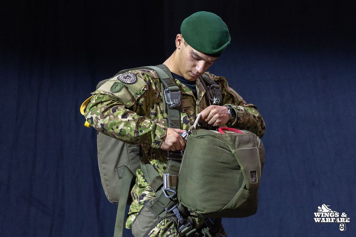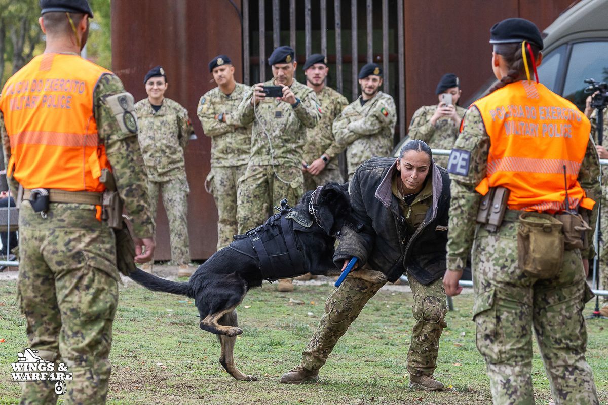 In terms of operational demonstrations, there were three distinct moments to watch. The first involved the deactivation of explosive devices/IEDs by soldiers from the 1st Engineering Regiment, demonstrating the entire process of identification, neutralization, and collection of evidence for further investigation. This was followed by a K-9 unit demonstration by the 2nd Lancers Regiment, highlighting the bond and coordination between the military-dog duo, culminating in a simulation of approaching a hostile and armed individual. Finally, the Paratroopers gave a practical presentation on how the automatic opening parachute is equipped.