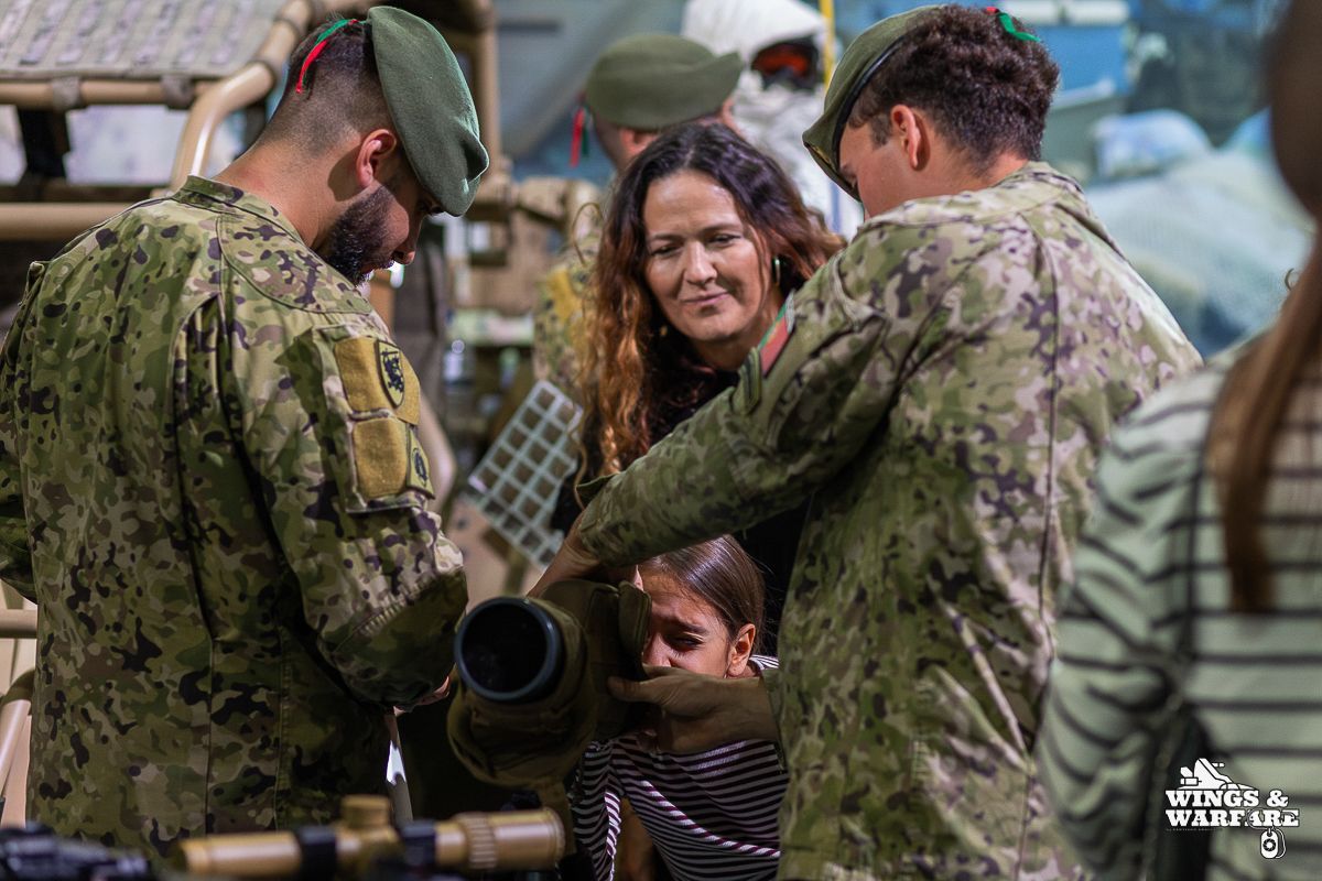 In the interior of the exhibition, visitors were able to see various types of light weapons used by units such as the Commandos, Paratroopers, and Special Operations Forces, among others. It was also possible to try out simulation systems that help prepare military personnel before they are deployed in real scenarios, observe the capabilities of improvised explosive device (IED) deactivation and CBRN defense, and learn about the pharmaceutical work carried out by the National Medicines Laboratory. The exhibition also included areas dedicated to air defense capabilities and the use of unmanned aerial systems (drones).