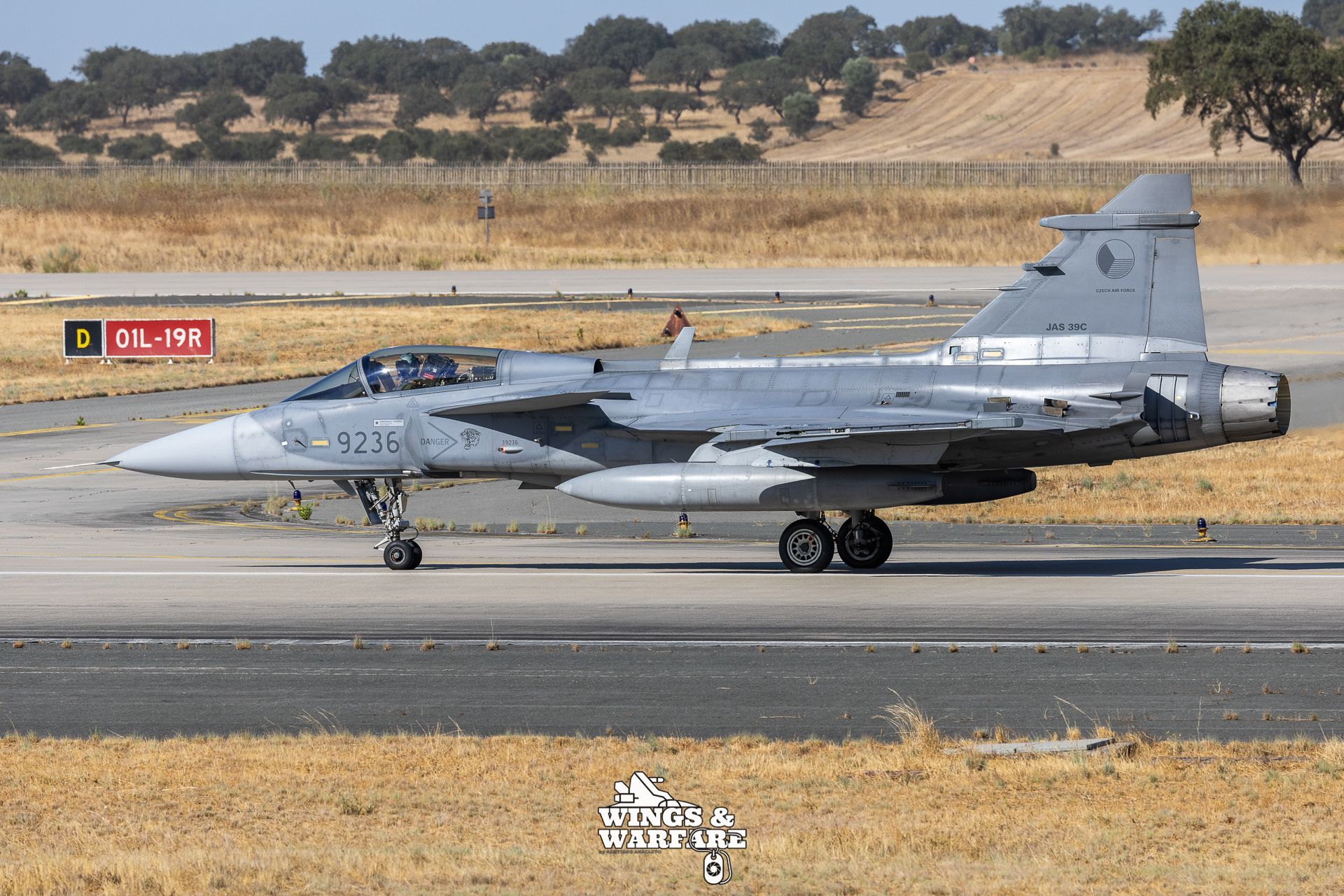 Saab JAS 39C Gripen 9236 of the 211. Taktická Letka (211th Tactical Squadron), Czech Air Force, taxiing at Air Base No. 11 in Beja during NATO Tiger Meet 2025. © Wings & Warfare