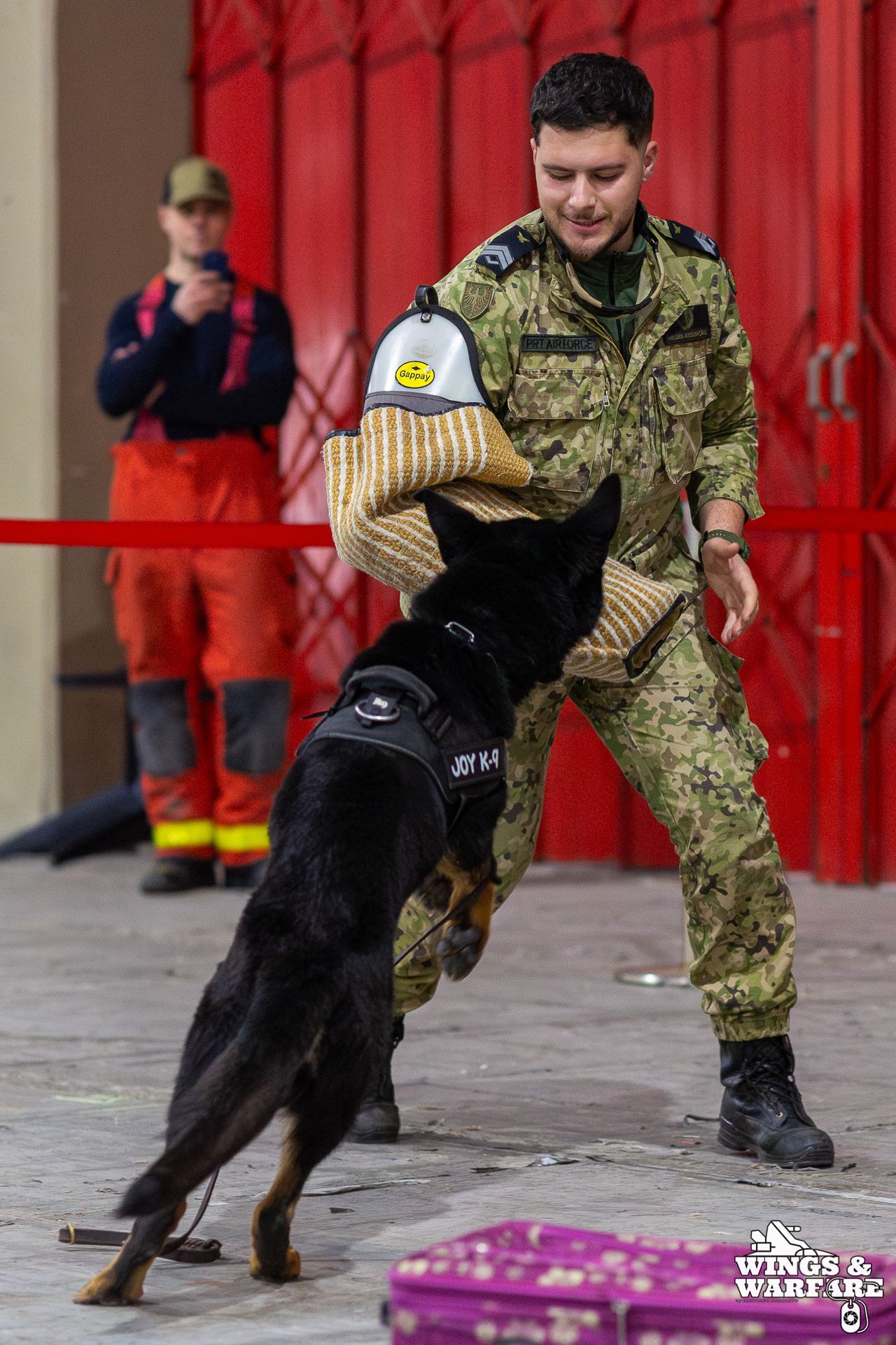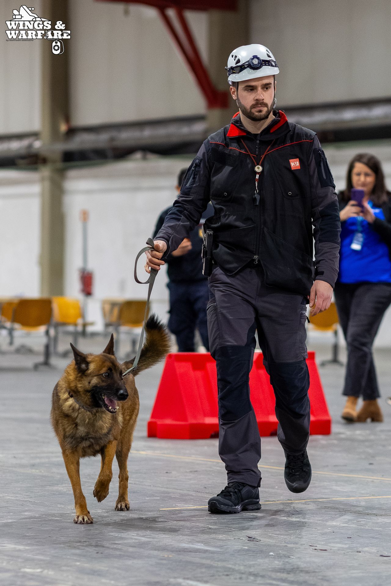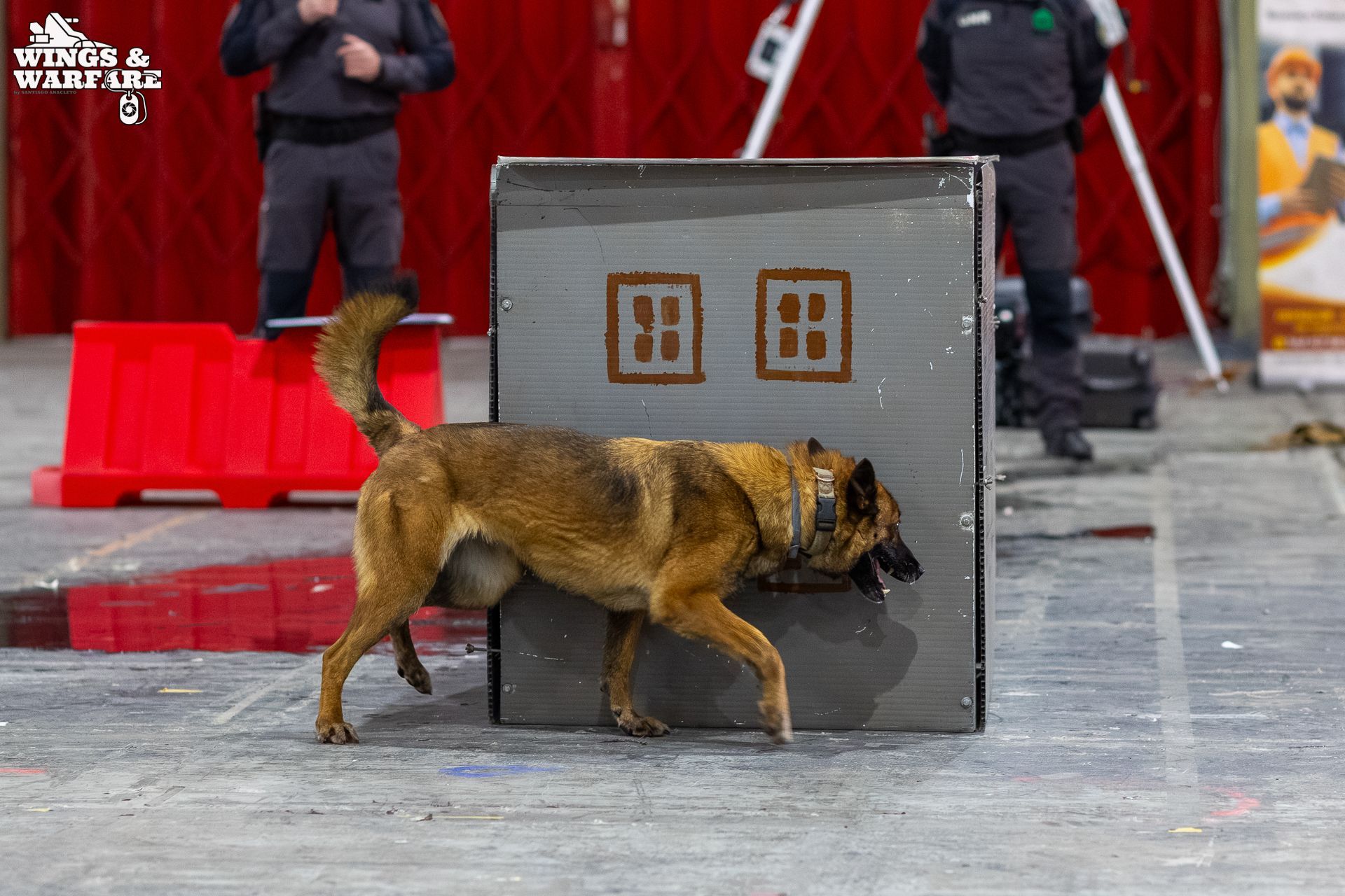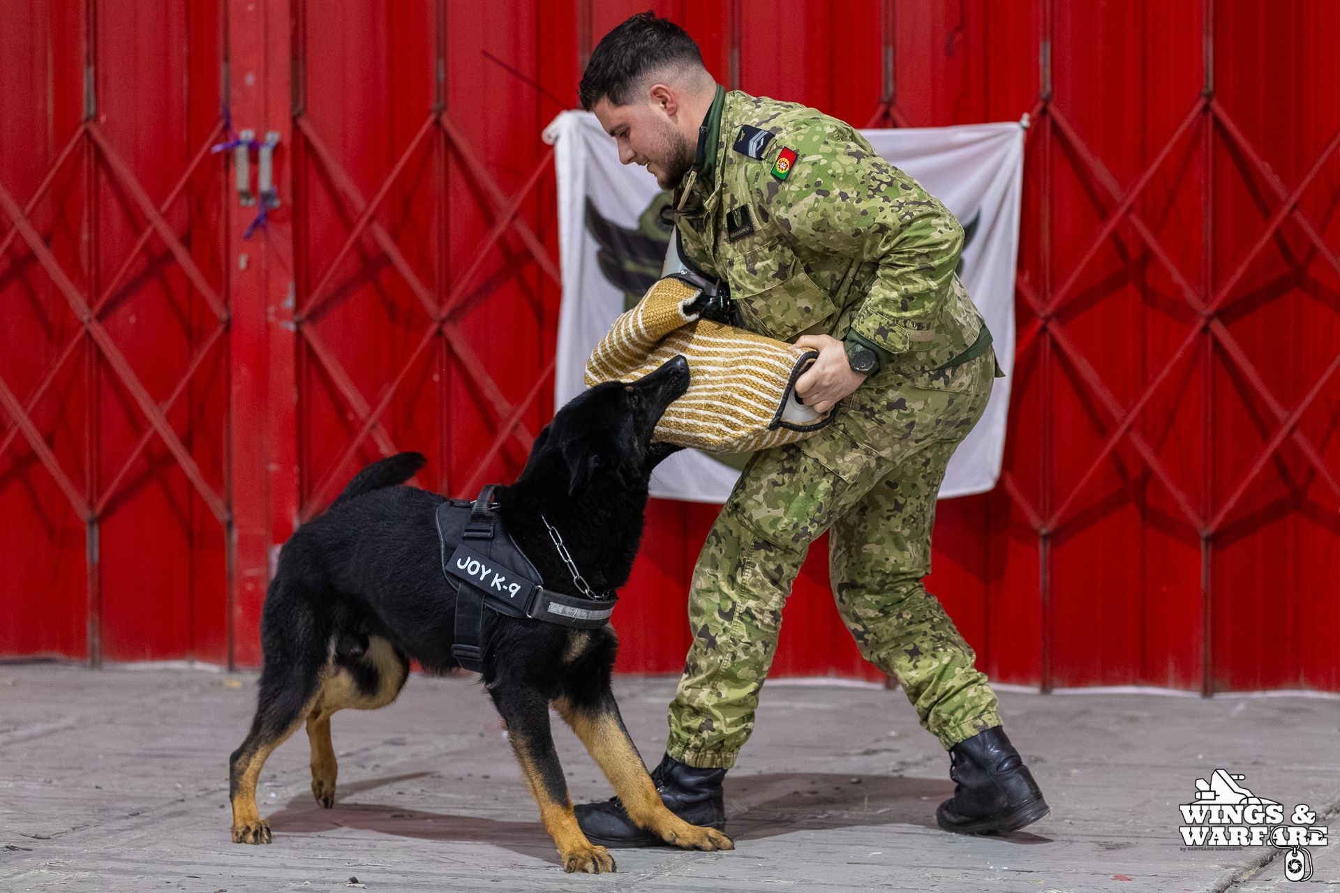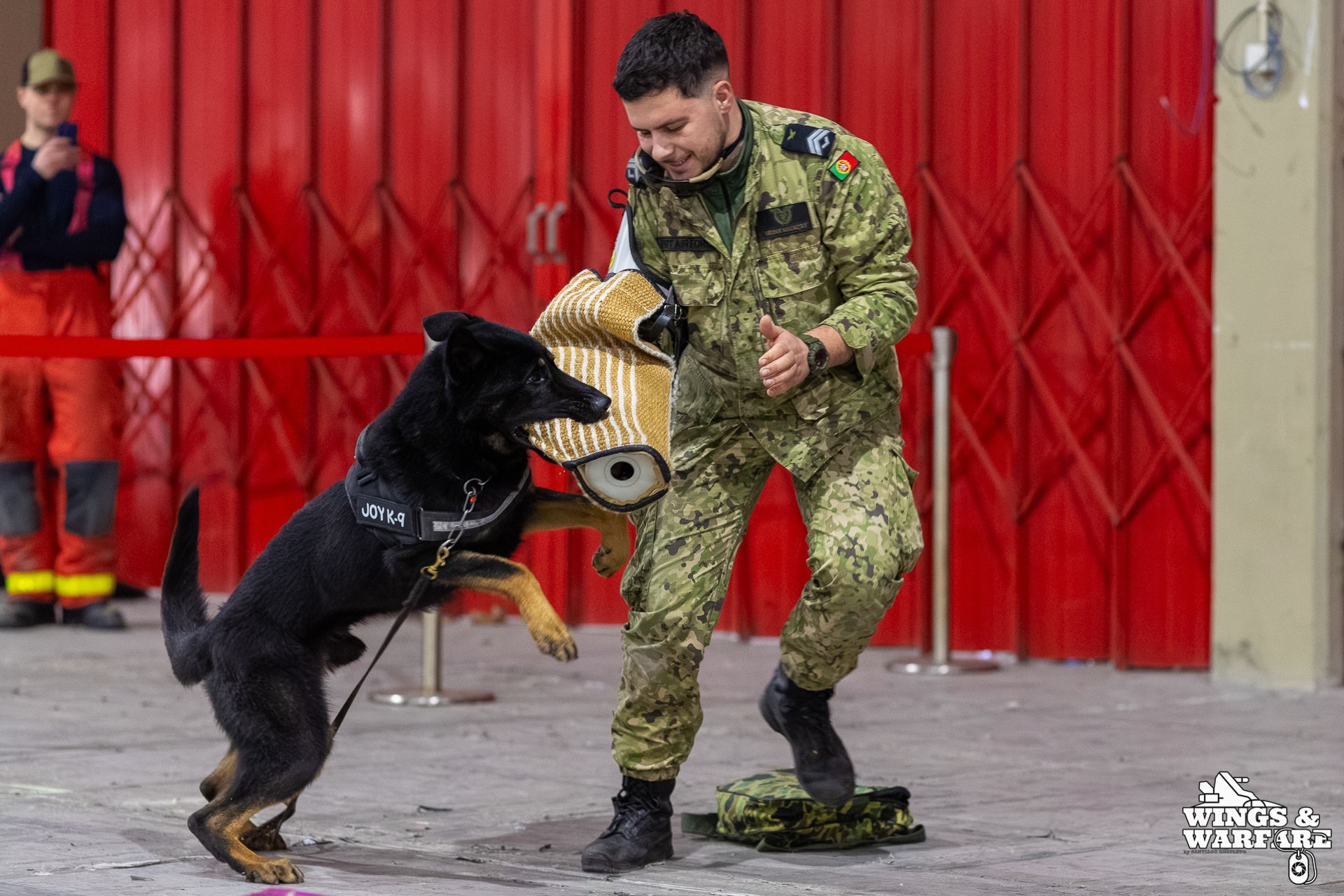 The Portuguese Air Force brought a masterclass in precision and instinct. From foundational obedience to advanced Guard and Patrol, the visual narrative captures a complex tactical simulation: a suspect resisting a search in a military area, the immediate interception by the patrol dog, and the subsequent explosive detection. It is a raw display of an incredibly versatile asset responding flawlessly to multiple threats.