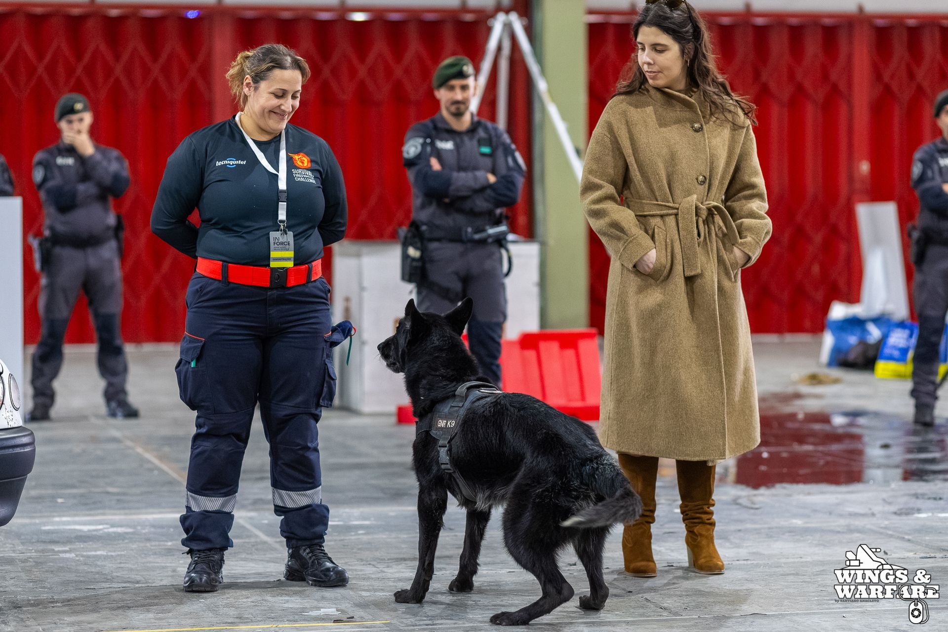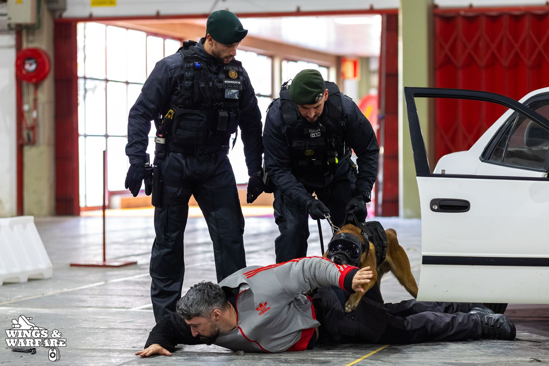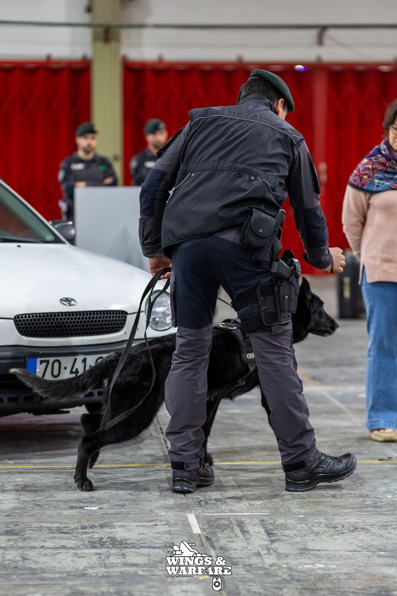 Similarly, the GNR’s Porto K9 Section provided a comprehensive display of adaptability, ranging from humanitarian search and rescue to criminal repression. The lens followed the rapid escalation of a public order scenario—intercepting a suspect vehicle, neutralizing an armed threat, and deploying specialized detection dogs for narcotics, explosives, and contraband. One of the most compelling moments to document was the olfactory precision test within a crowd, highlighting a crucial tactical skill for operations in densely populated environments.