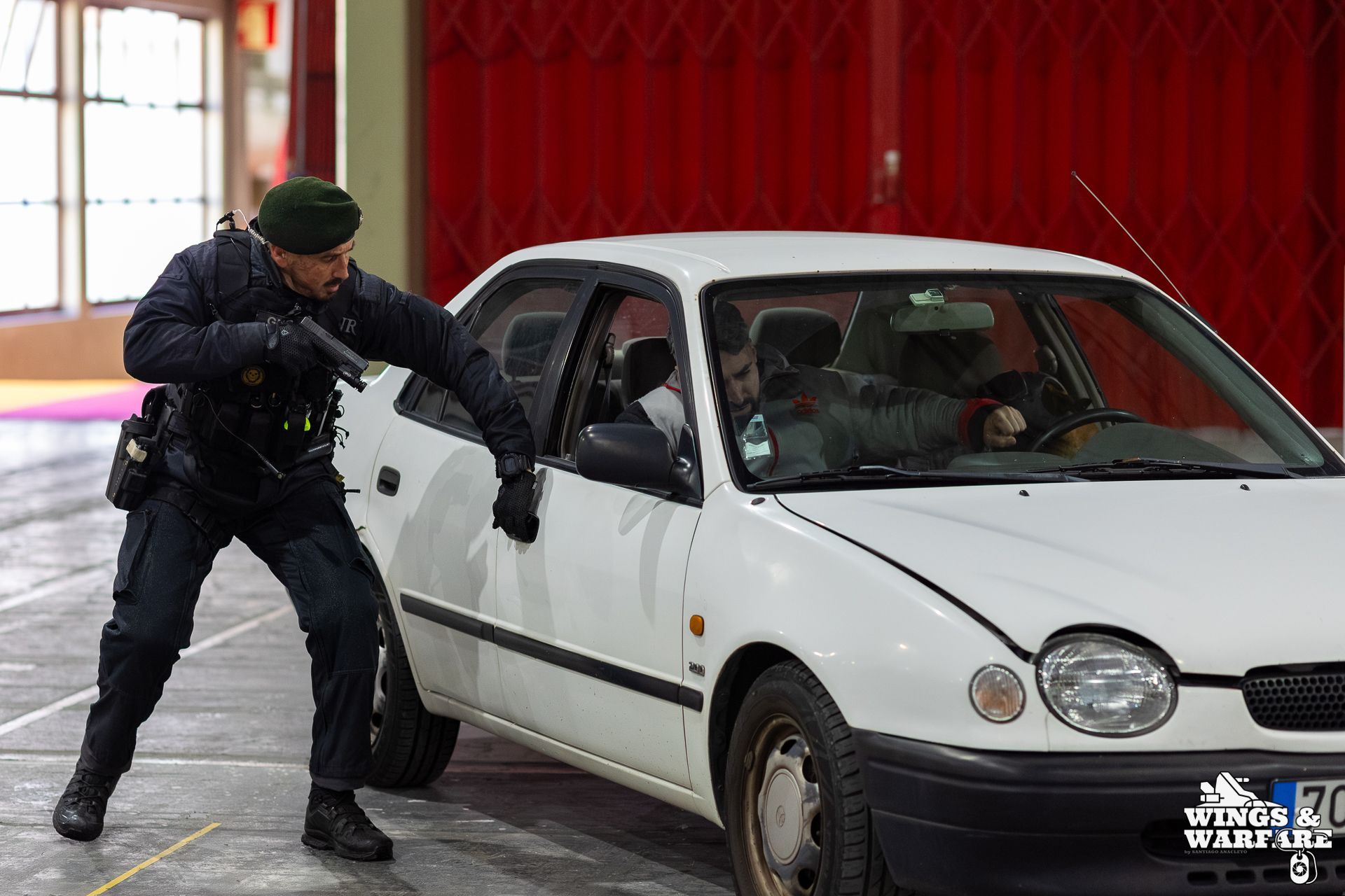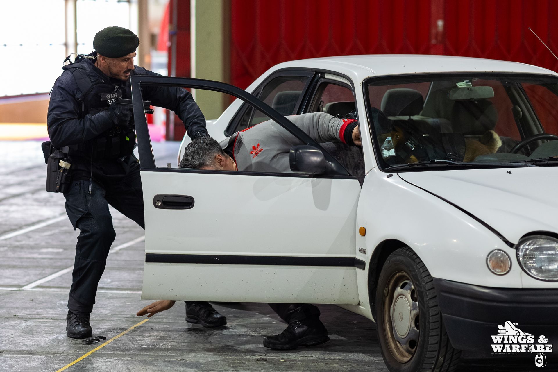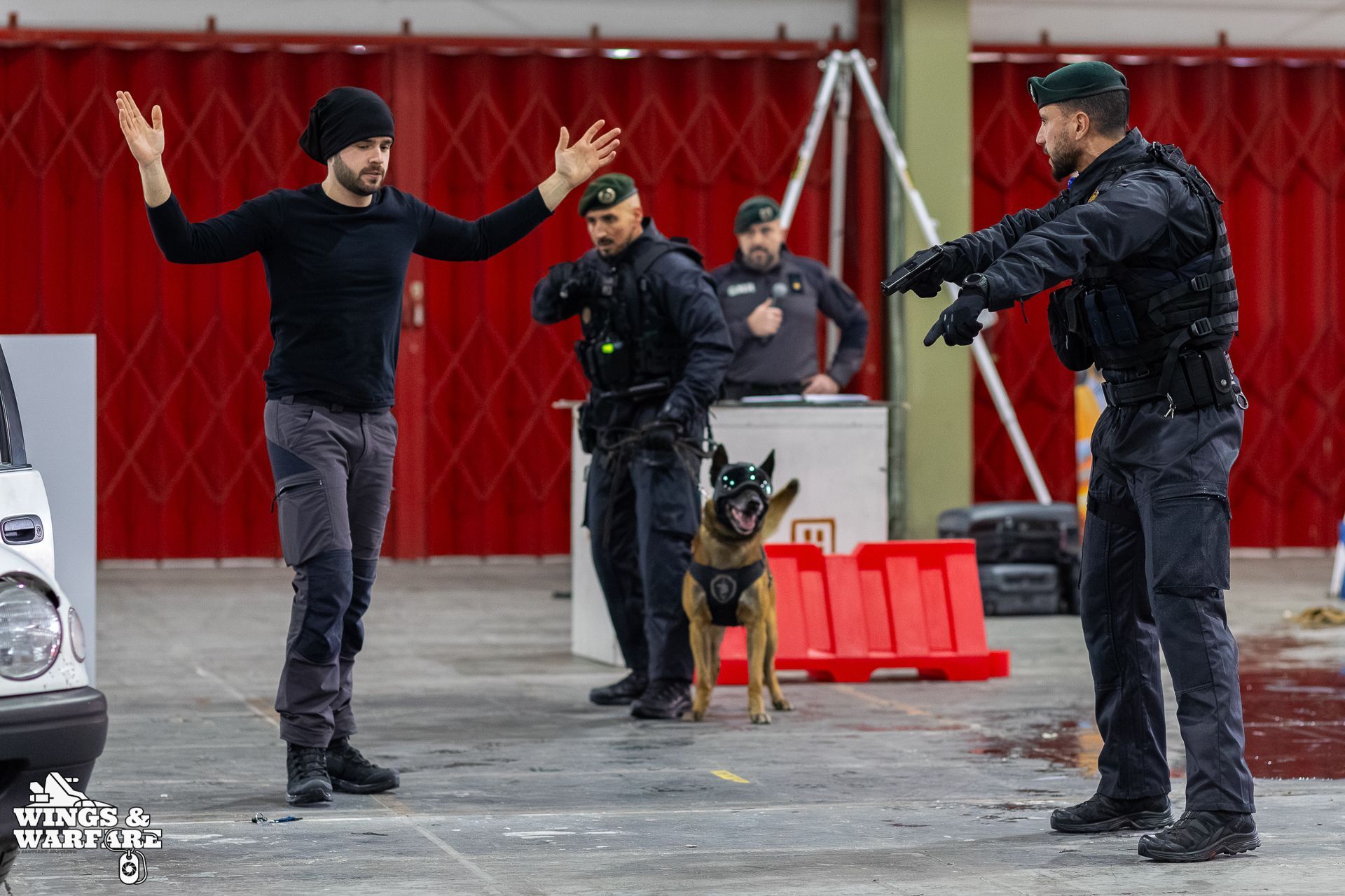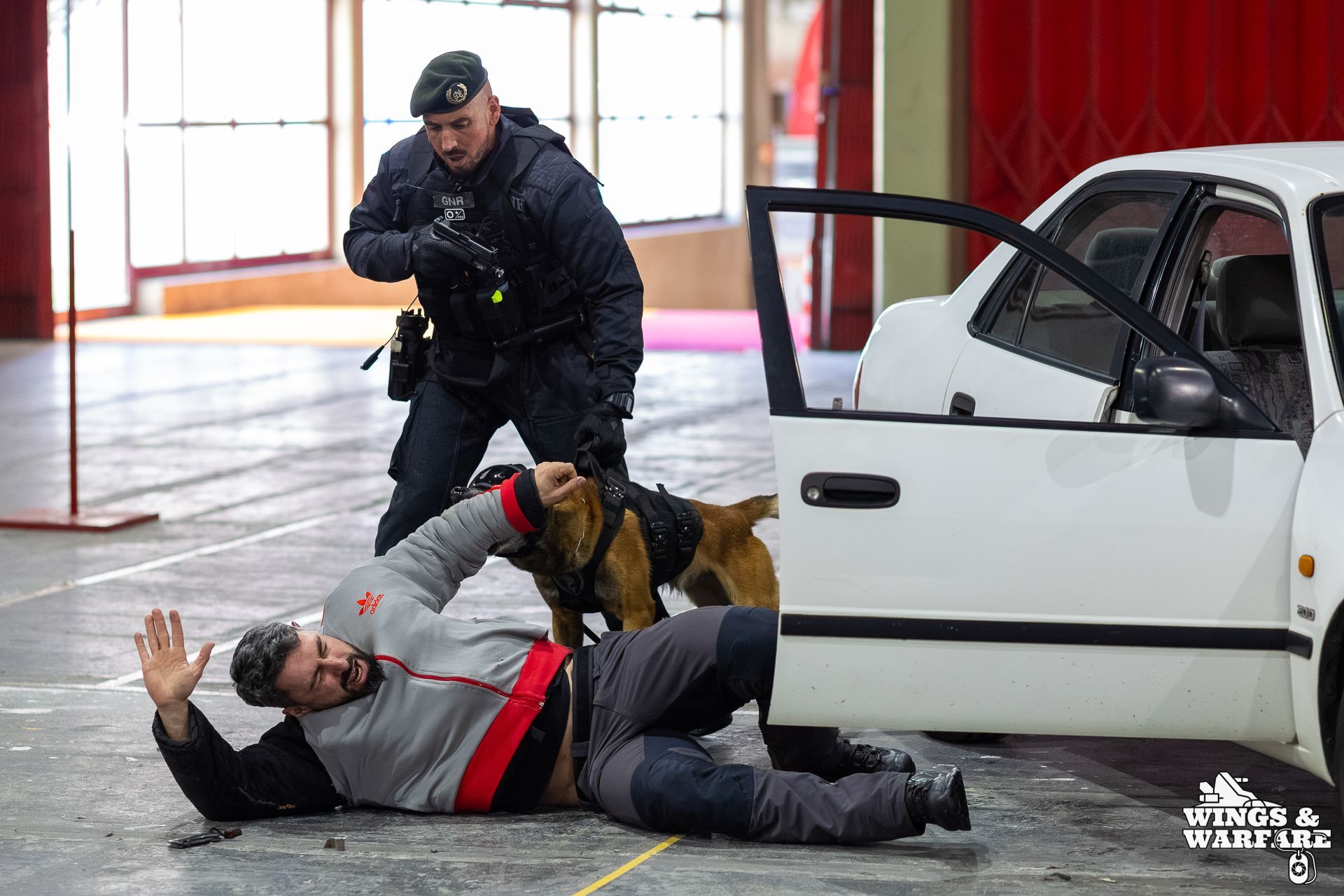 Similarly, the GNR’s Porto K9 Section provided a comprehensive display of adaptability, ranging from humanitarian search and rescue to criminal repression. The lens followed the rapid escalation of a public order scenario—intercepting a suspect vehicle, neutralizing an armed threat, and deploying specialized detection dogs for narcotics, explosives, and contraband. One of the most compelling moments to document was the olfactory precision test within a crowd, highlighting a crucial tactical skill for operations in densely populated environments.