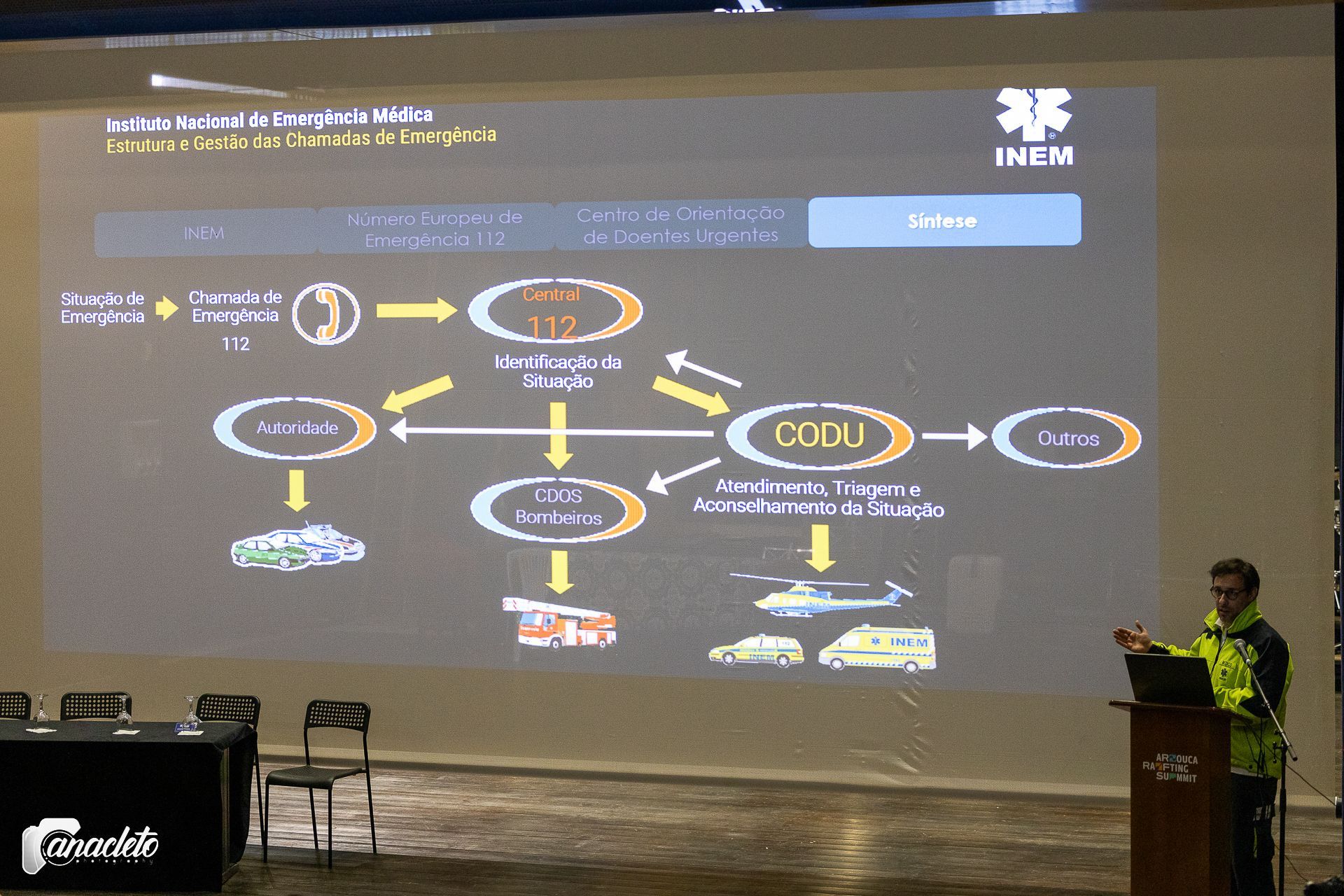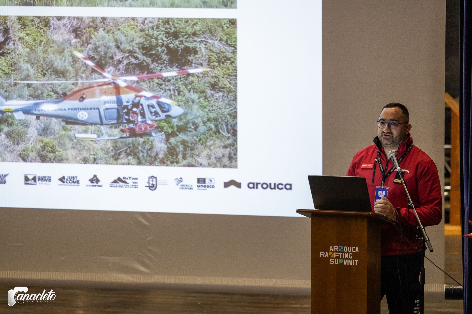 After the opening session, there was a presentation by Miguel Ângelo Ferreira, Senior Sports Technician at the Municipality of Arouca, who gave an introduction to the various sports practiced at Arouca GeoPark, from water sports such as rafting and canoeing, to mountain biking, climbing and trail running, among others. We noted the rapid growth of these activities and the number of people who attend them throughout the year, and how important it is to have teams prepared to respond when tragedy strikes.