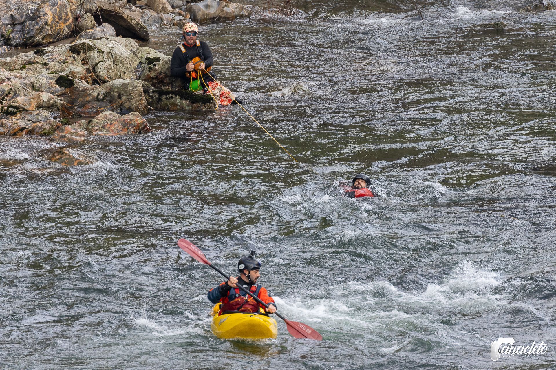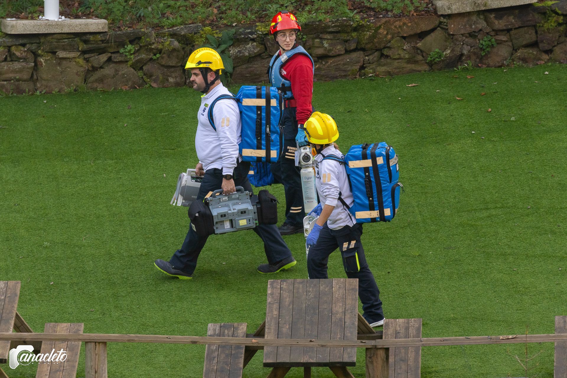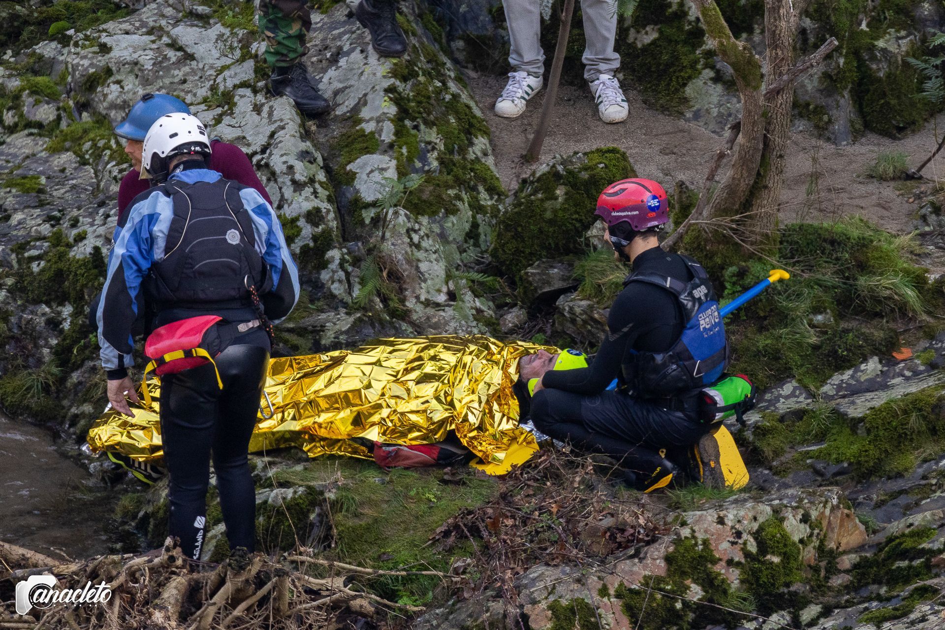 In the afternoon, the exercise took place on the River Paiva, where the participants were confronted with an accident involving a raft that capsized, resulting in one injured person.