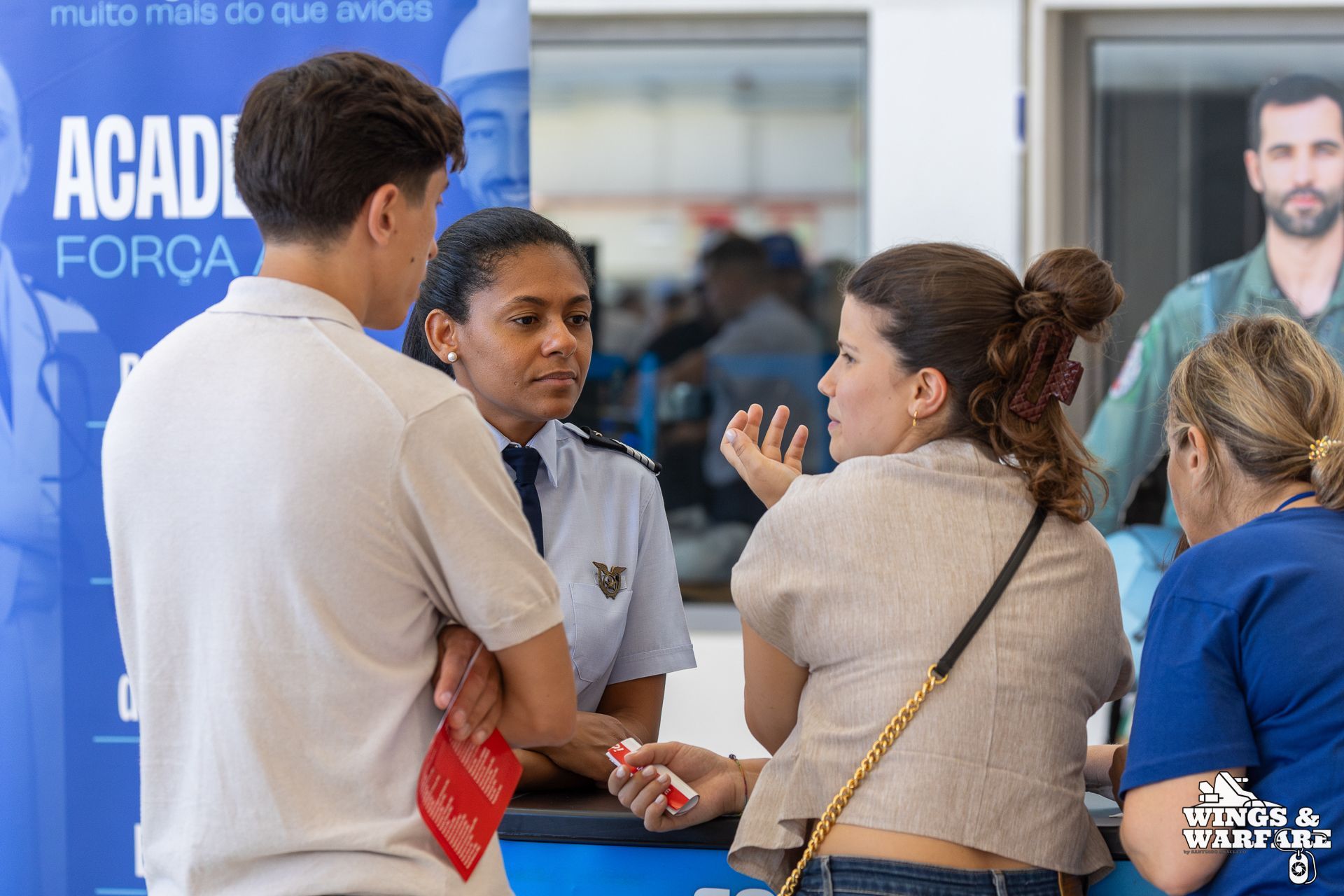 Inside the hangar, the atmosphere was lively thanks to a virtual reality (VR) flight simulator, which attracted curious visitors of all ages, providing an immersive cockpit experience. Also in this space, the area dedicated to the Air Force Recruitment Center allowed those interested in joining the military to ask all their questions directly to those who guide future military personnel.