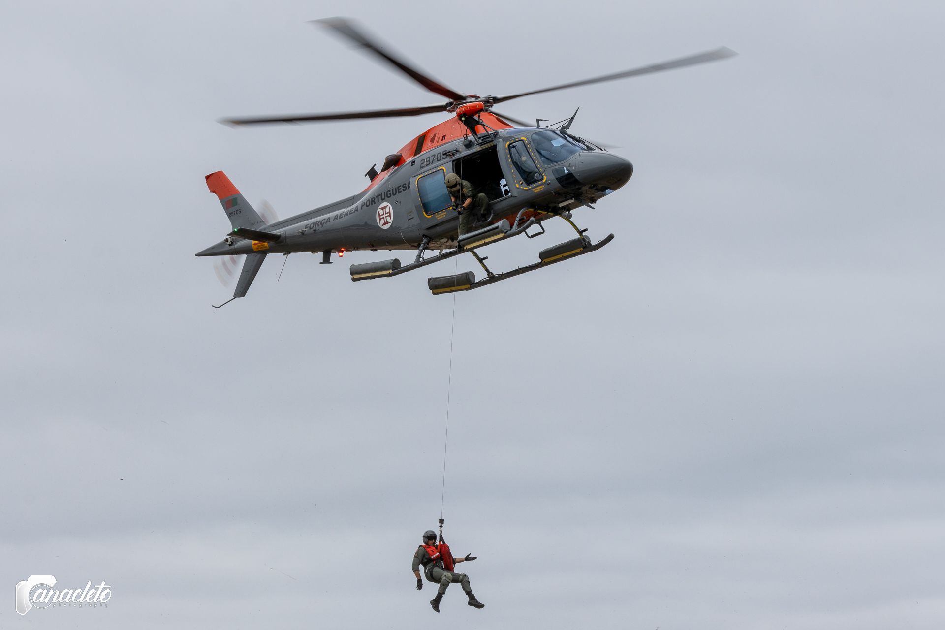 The “ Zangões” didn't disappoint either, doing what they do best, and performed a Search and Rescue demonstration in which they simulated the retrieval of a victim. After the demonstration, they treated the rest of the spectators to several passes, ending with a slow pass along the taxiway to greet those present.