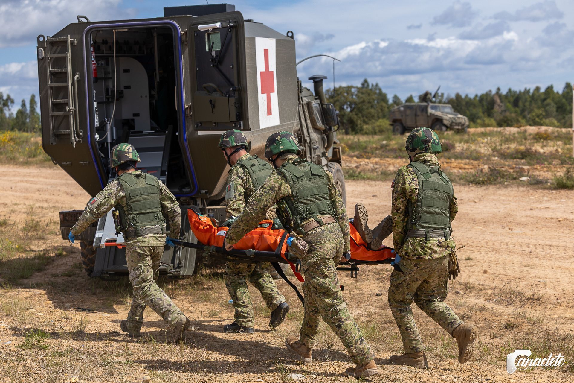 Set against the backdrop of the LEVONTO region, a fictitious geographical area located 6,000 km away from Brussels, with the participation of up to 1. 700 military personnel and 350 vehicles, the ORION 25 exercise is conducted in interface areas that simultaneously allow it to operate in the urban centers of Ponte de Sor, at the Ponte de Sor Aerodrome, in the Domingão region and the town of Bemposta, and to make the most of the Santa Margarida Military Field, the Army's maneuvering field, as an area of excellence for training national and international military forces.