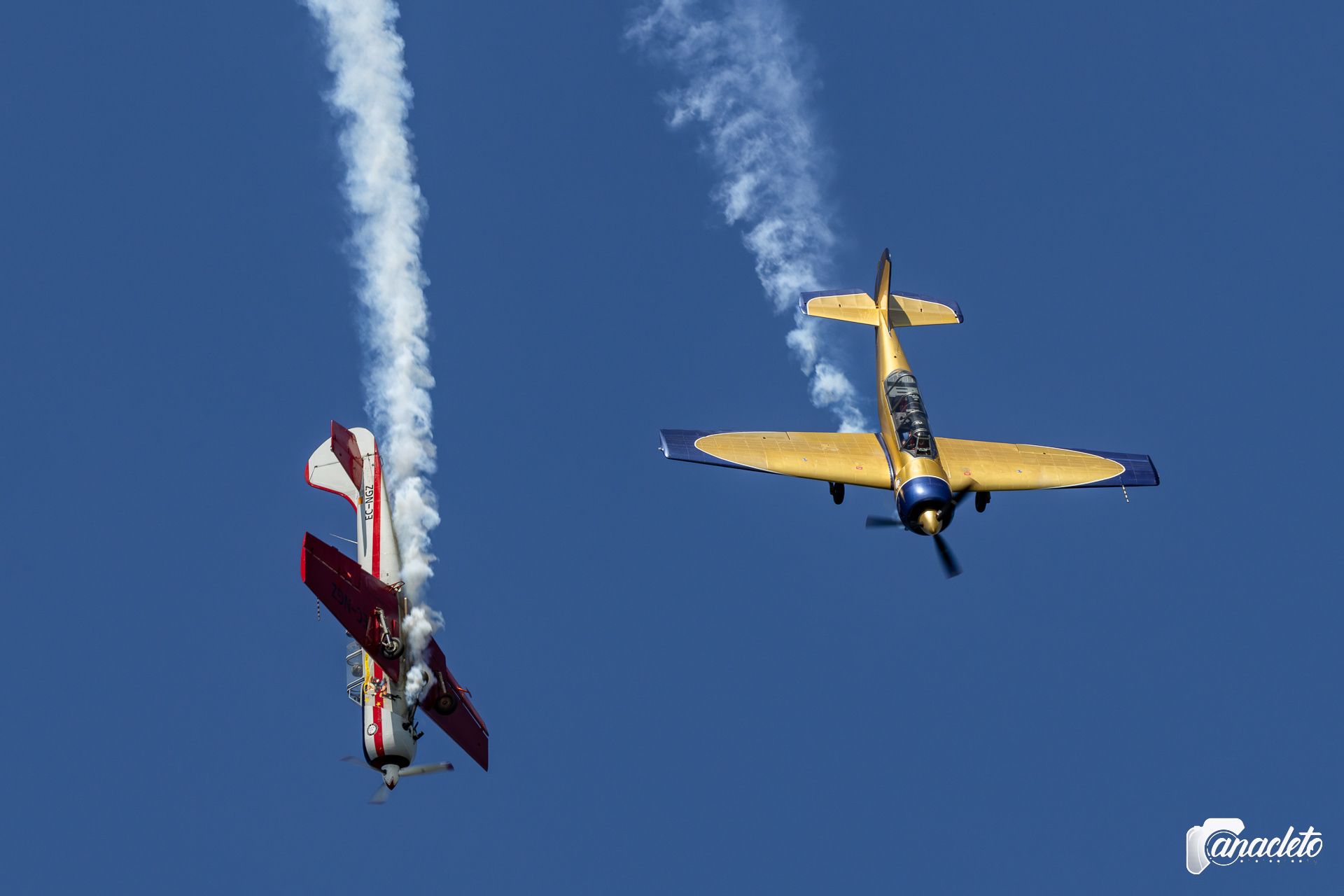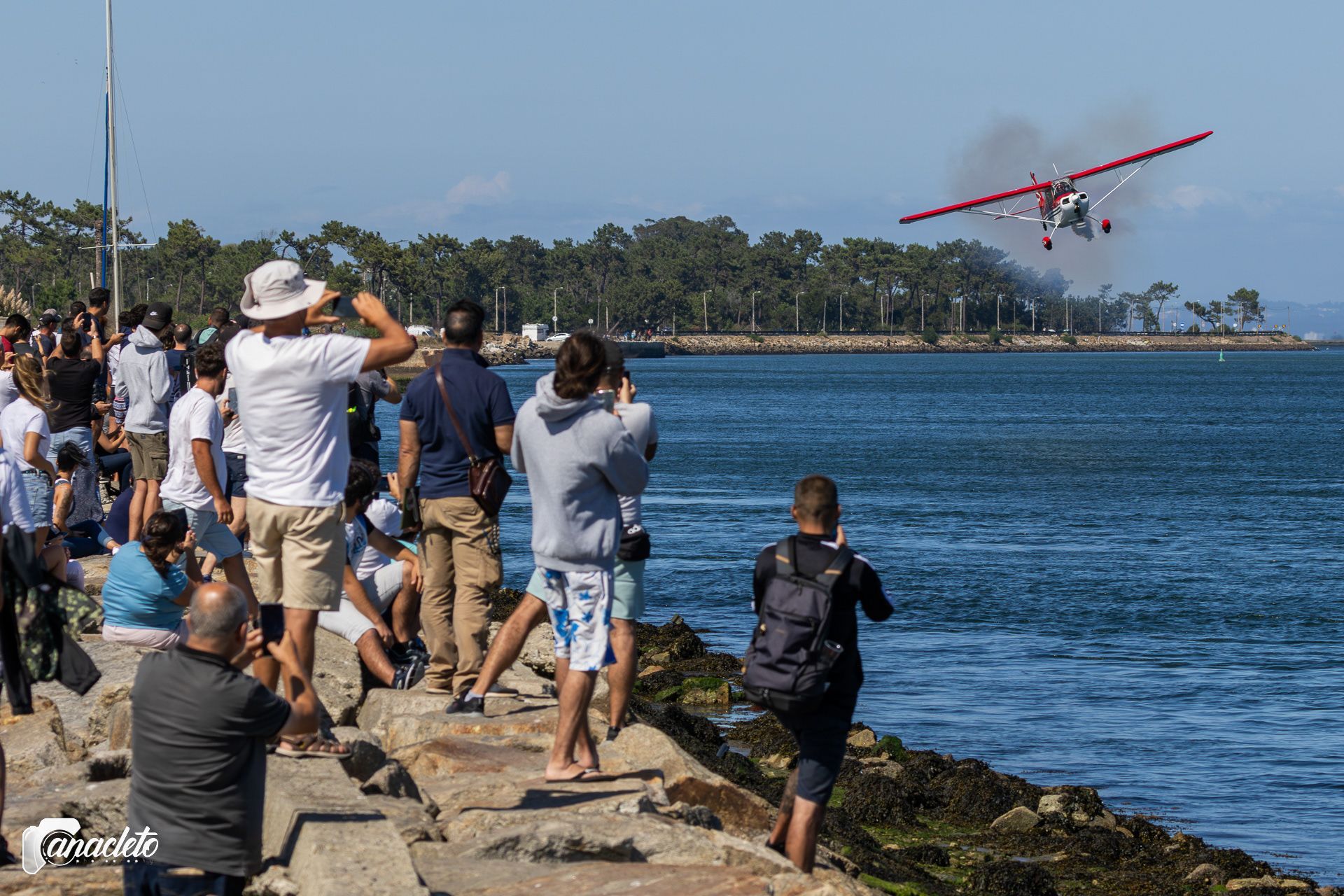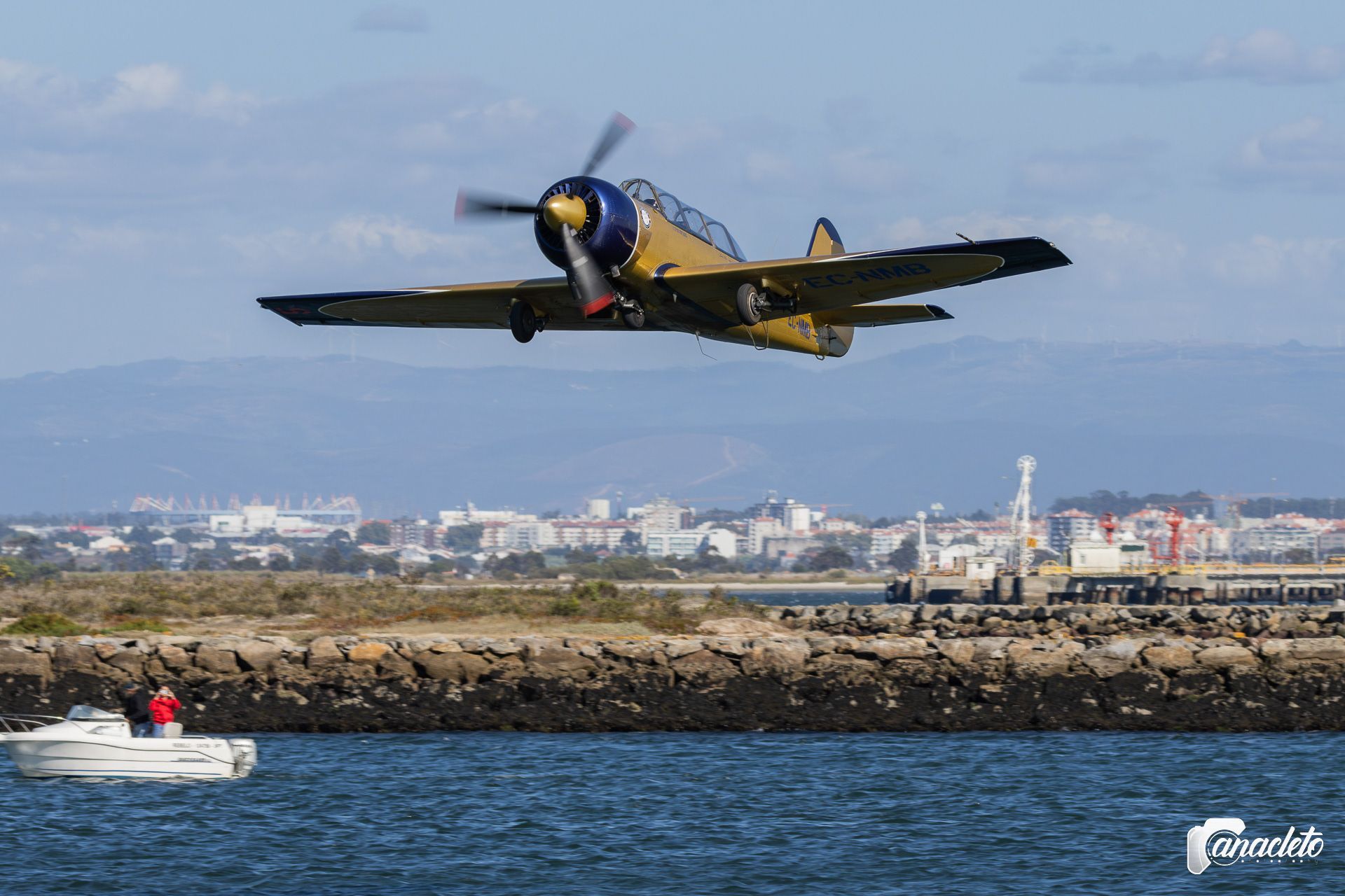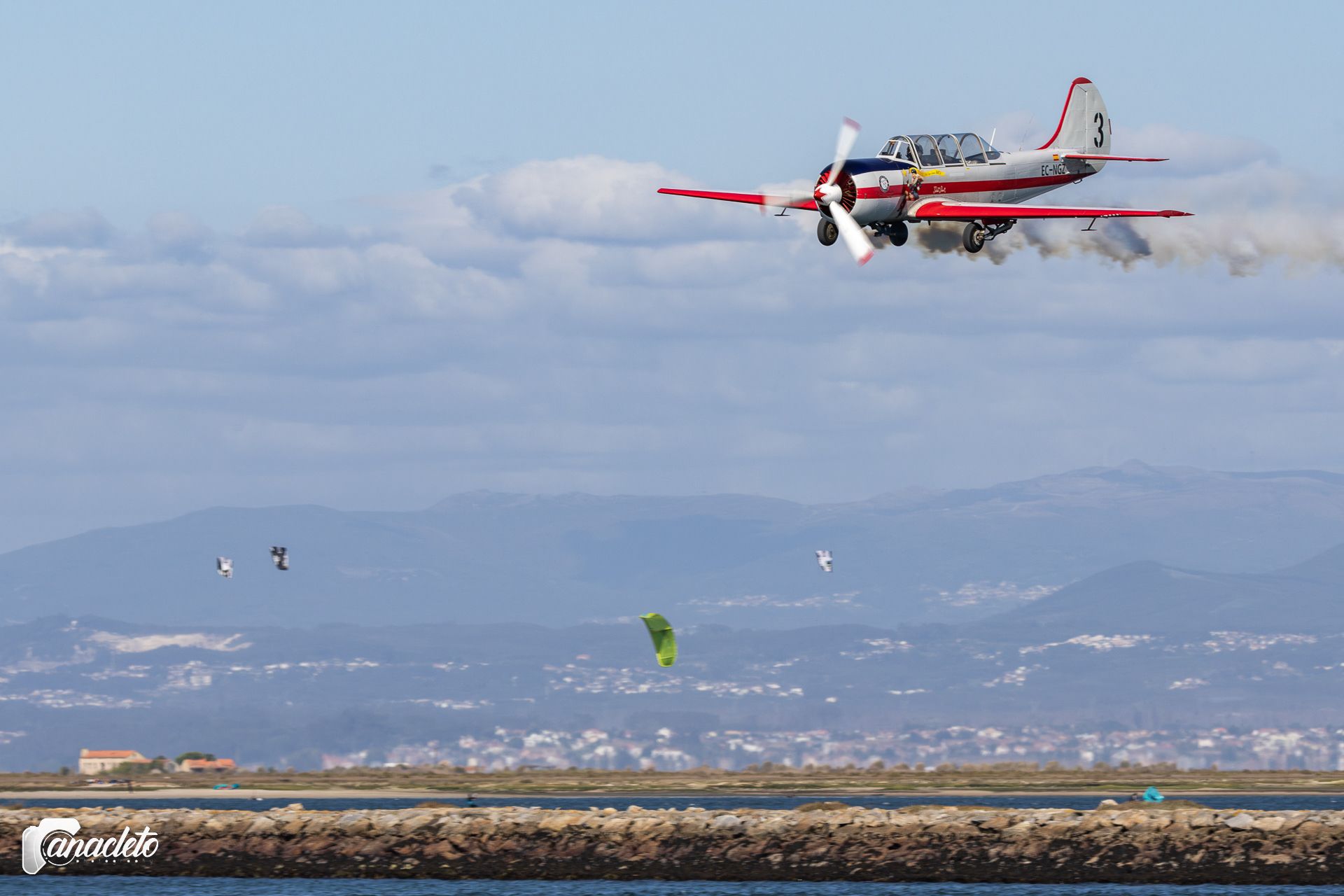 As part of the program for the Dunas de São Jacinto Festival, a small airshow gave visitors a taste of the action in the skies over the bay. It featured two aircraft from the Aero Fénix group, a DHC-1 Chipmunk and a Harvard Mk.IV (T-6 "Bispo d'Aveiro"), both flying in Portuguese colors, the Portuguese pilot Pedro Cunha Pereira at the controls of a Champion 7ECA Citabria, the Portuguese pilot Luis Garção at the controls of an Extra EA 300LT and the "YAKSTARS" aerobatic patrol.
