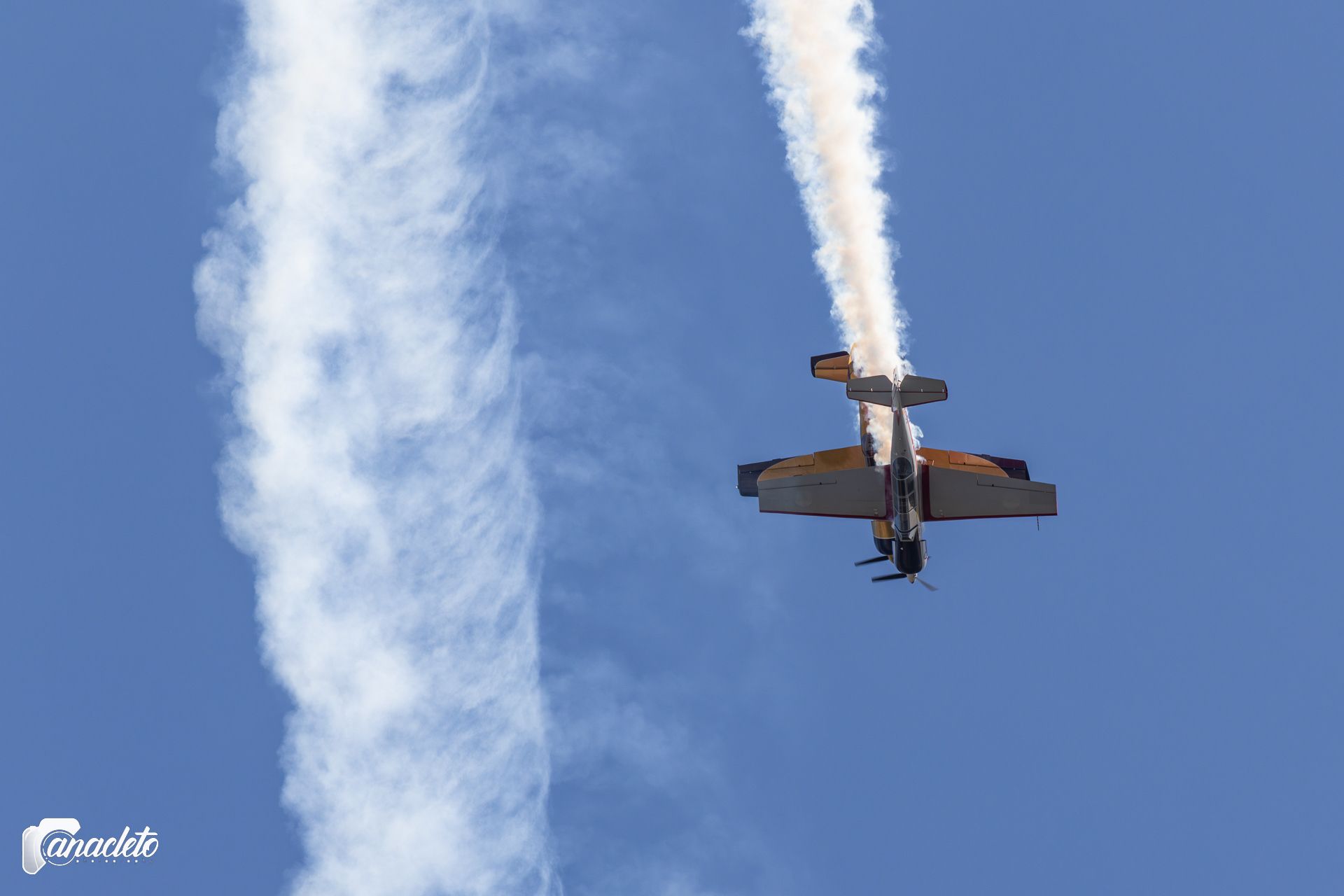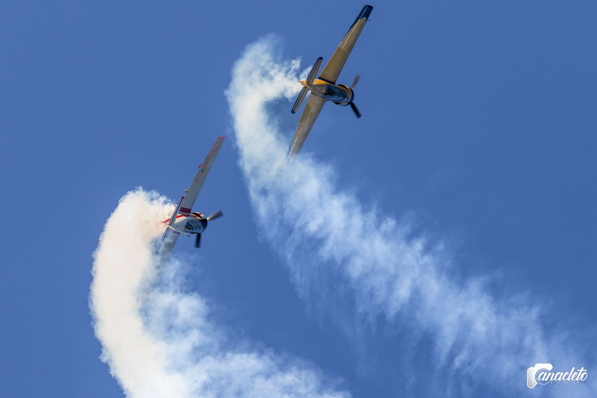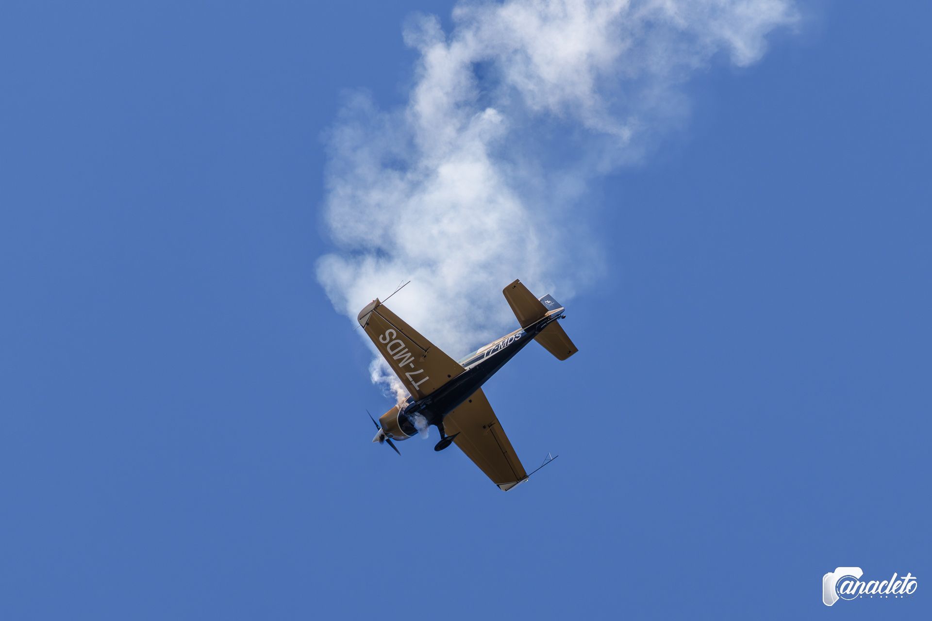 As part of the program for the Dunas de São Jacinto Festival, a small airshow gave visitors a taste of the action in the skies over the bay. It featured two aircraft from the Aero Fénix group, a DHC-1 Chipmunk and a Harvard Mk.IV (T-6 "Bispo d'Aveiro"), both flying in Portuguese colors, the Portuguese pilot Pedro Cunha Pereira at the controls of a Champion 7ECA Citabria, the Portuguese pilot Luis Garção at the controls of an Extra EA 300LT and the "YAKSTARS" aerobatic patrol.