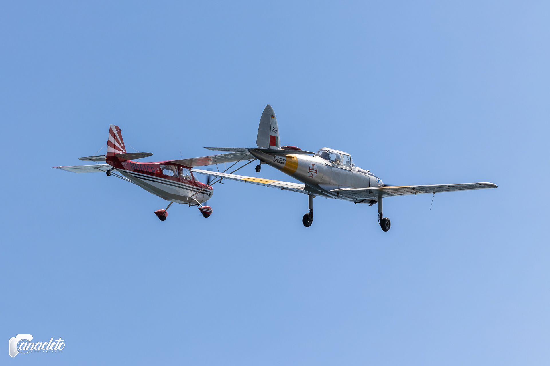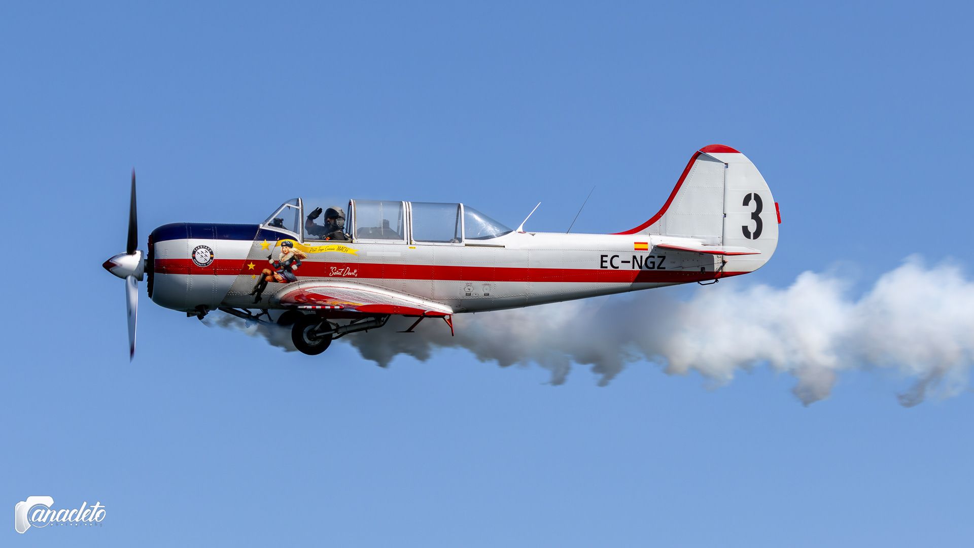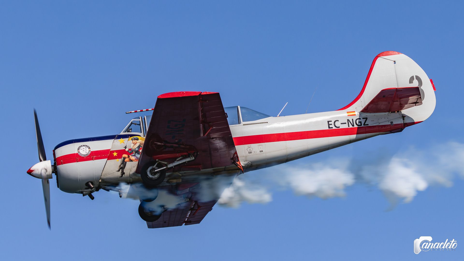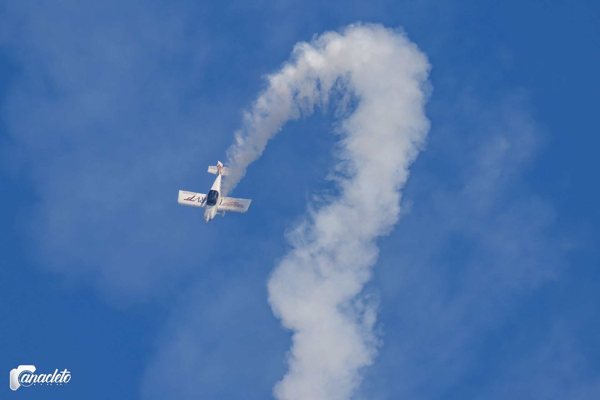 As part of the program for the Dunas de São Jacinto Festival, a small airshow gave visitors a taste of the action in the skies over the bay. It featured two aircraft from the Aero Fénix group, a DHC-1 Chipmunk and a Harvard Mk.IV (T-6 "Bispo d'Aveiro"), both flying in Portuguese colors, the Portuguese pilot Pedro Cunha Pereira at the controls of a Champion 7ECA Citabria, the Portuguese pilot Luis Garção at the controls of an Extra EA 300LT and the "YAKSTARS" aerobatic patrol.