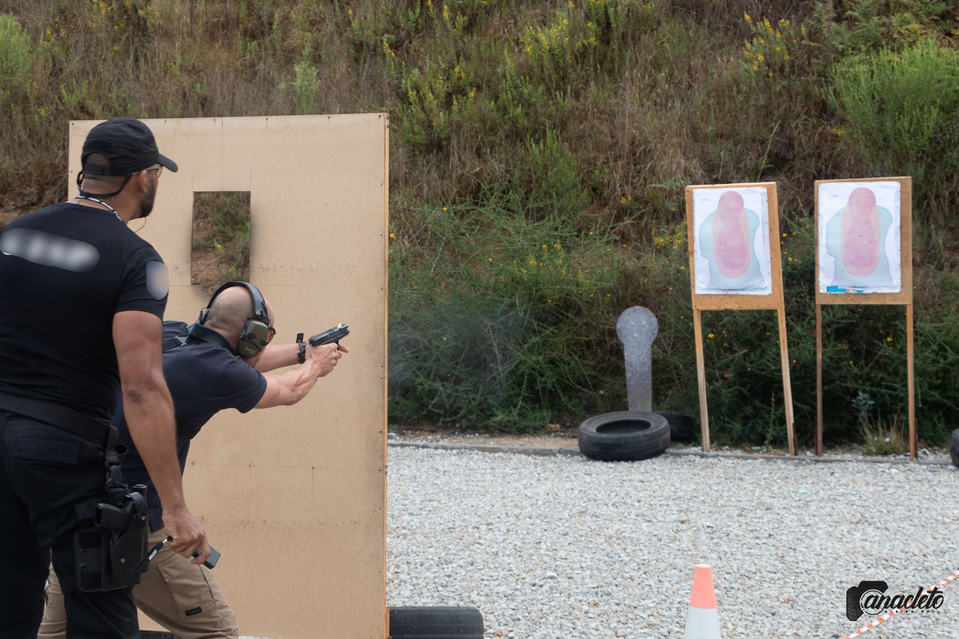 Over the course of several weeks, investigators from the Polícia Judiciária Militar took part in a course to train shooting instructors, thus giving them the skills to train other colleagues in this subject. They took part in several shooting ranges, using the various weapons available in the PJM's armoury, such as the Glock 19, the Mossberg 590 and the H&K MP7. They also had the opportunity to use weapons from the training organisation, such as the H&K MP5 and the FN SCAR-L. They also carried out shooting exercises at night in order to sharpen their skills.